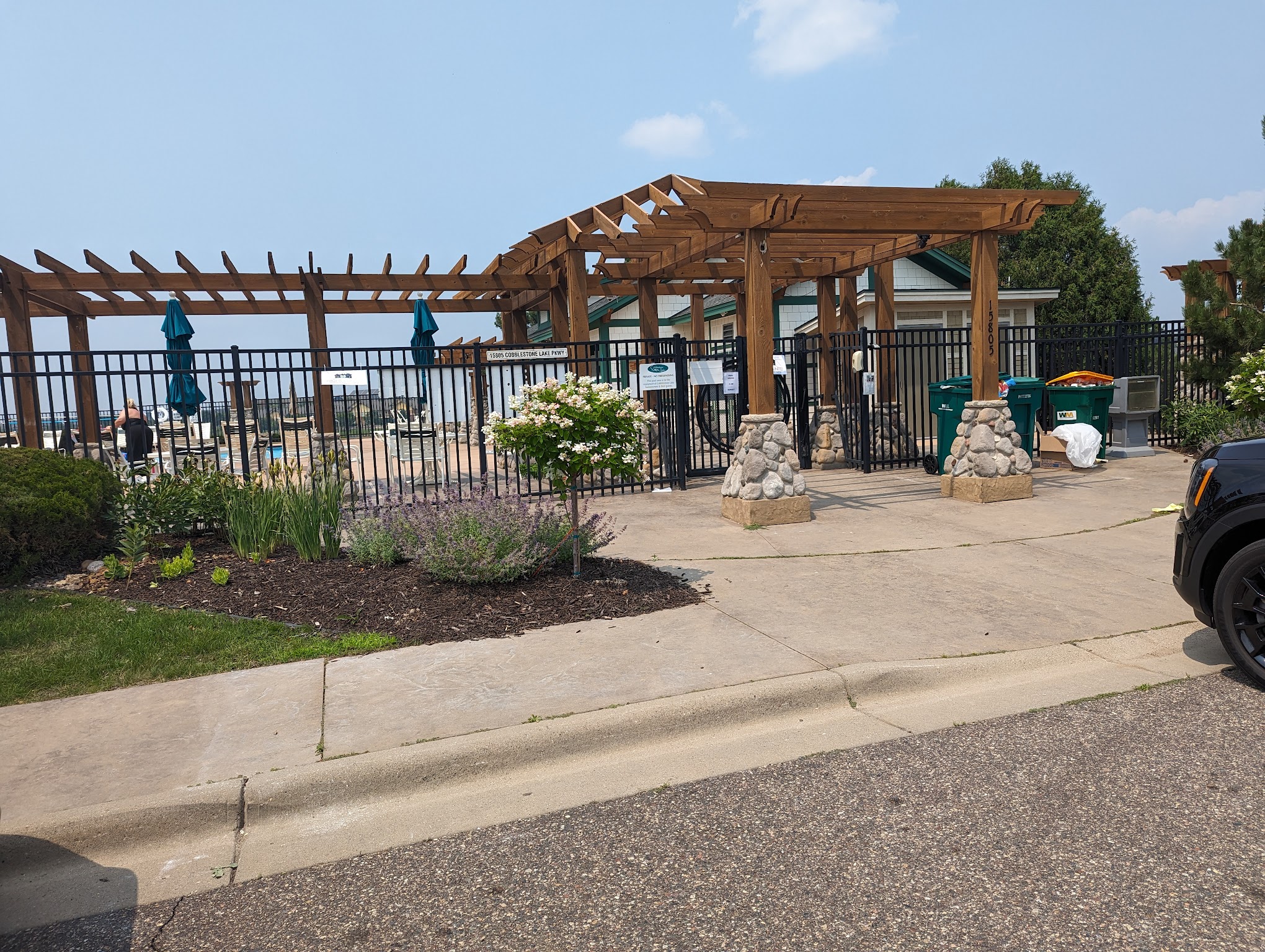 The Cobblestone Lake Association Pool, located in Apple Valley, MN, offers two pools for residents and their guests. The main pool features zero-entry access, a maximum depth of 5 feet, and a small slide. A separate wading pool is also available specifically for children.