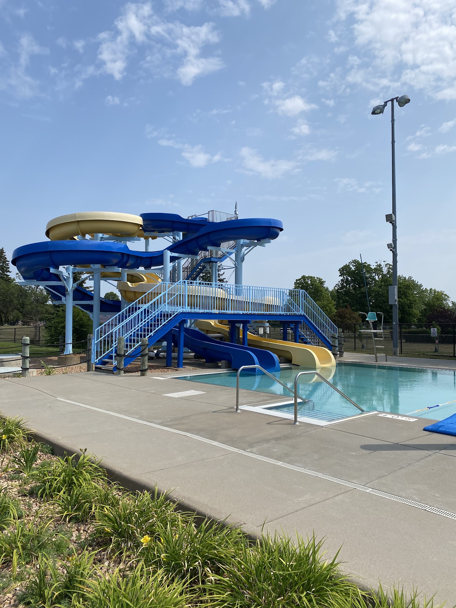 This place sucks. Use the new hope pool or maple grove community center instead. After I paid they told me my child cant use a life jacket unless its "coast guard approved", so its safer for her to use nothing at all? She cant swim. The life guards were really quick to scream no running at her (shes 3) but didnt give a shit about teens rough housing and pushing each other into the pool. The water is pretty cold for young children, you have to bring your own lock and the rules dont really seem to prioritize safety. Just go somewhere else if you have kids under 7