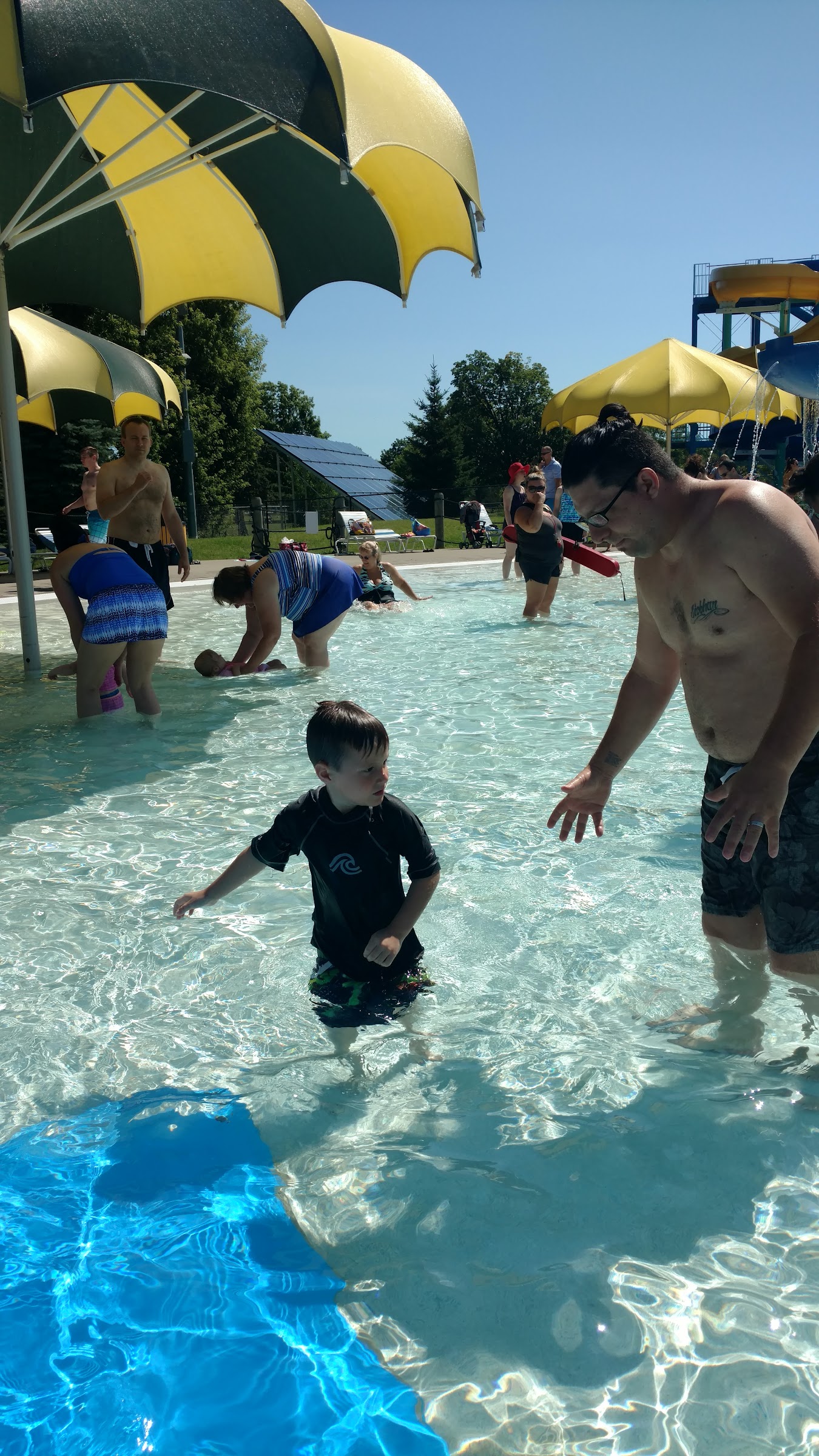 Super fun and the staff is really nice. It is a beautiful facility and pretty well-maintained. They have really excellent zero entry pools for a little kids! Clean bathrooms, and lots of deck seating. They also have a concession stand, but I have not tried any of the food there. Five stars!