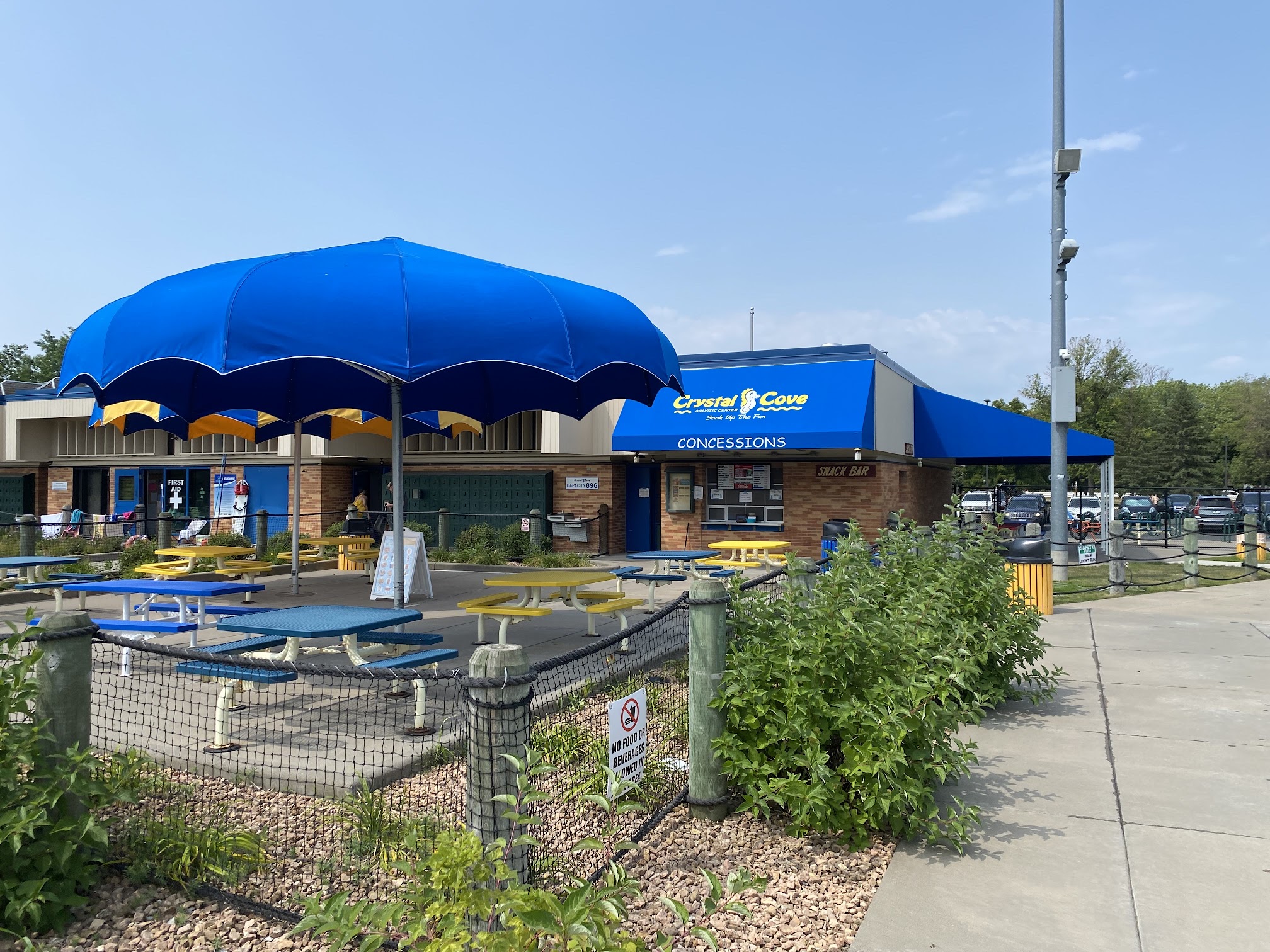 Love Crystal Cove and so happy it is open for the season! Very clean, friendly staff, lots of fun amenities, plenty of sun shades, great concessions stand - all at a reasonable price. The zero depth pool is great for littles and the larger pool is relatively shallow for families and to accommodate swimmers of all levels. The slides are really fun (the yellow one is super fast!) and the jumping platforms and climbing wall are a great addition for older kiddos/adults and stronger swimmers. It was worth the wait and we are excited to spend the summer at Crystal Cove!