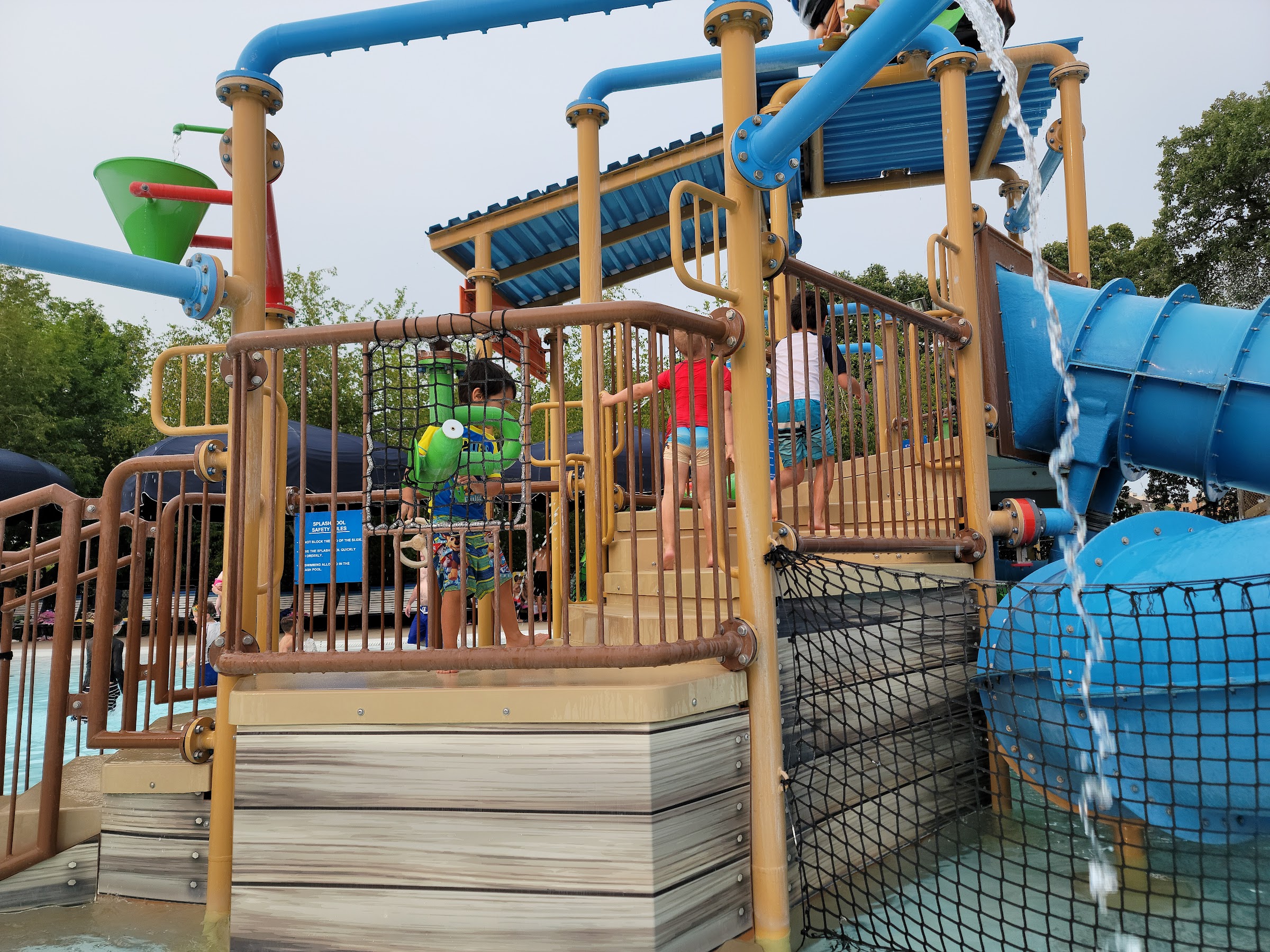 Super fun pool. Very big and warm water. Easy to see your kid everywhere. We loved the zip line. They have a slide with a tube and a body slide. And the diving boards are super fun. We didn’t do the flow rider but it looked fun.