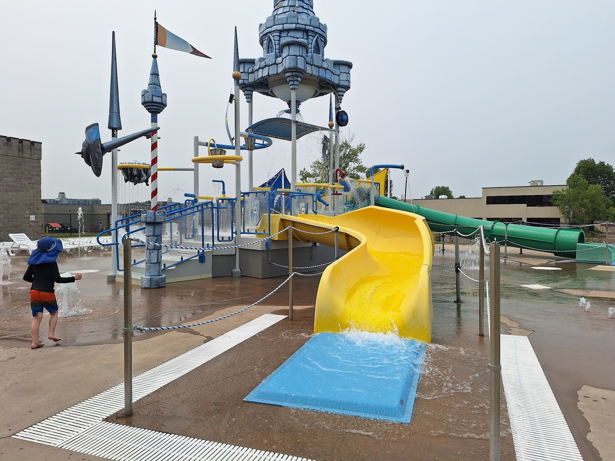 Really enjoyed our visit to this YMCA! It was a large establishment with an outdoor playground and indoor pool. The locker rooms were large and clean. Our family spent all of our time in the outdoor, castle-themed, splash pad and picnic area. It is all fenced in and also has two larger water slides ideal for your little ones.