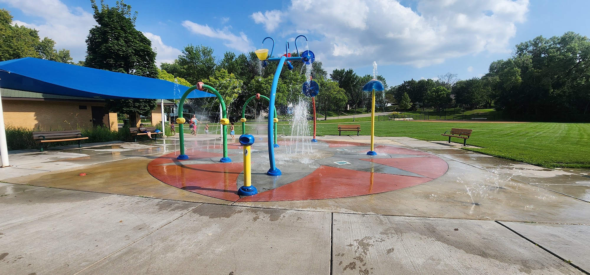Manor Park Splash Pad, located at 3129 Abbott Ave N in Minneapolis, MN, is a family-friendly outdoor water play area. Instead of a traditional pool, it features various interactive water sprayers, jets, and fountains designed for children and families to cool off and play during warm weather. It is a seasonal attraction within Manor Park.
