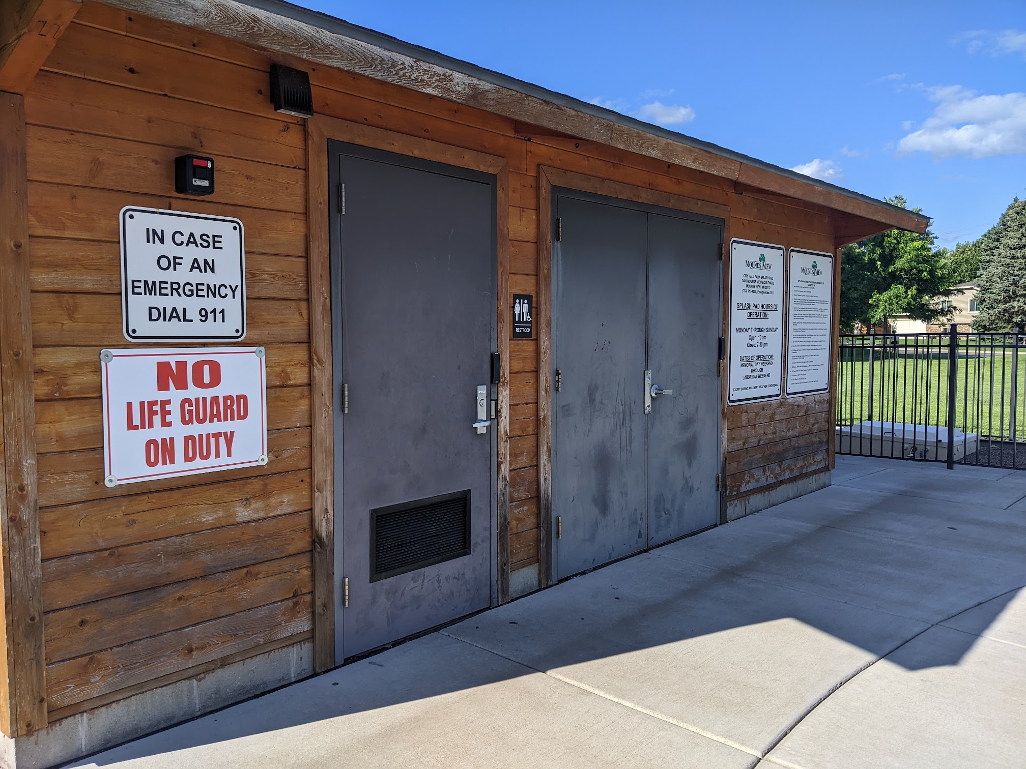 Free fun! Updated and maintained with a park right next to it to dry off. Parking is a bit difficult on the weekends. Busy place even during a weekday. We went three times this summer and my girls loved it. one stall bathroom on site with a few picnic tables and a very few benches as well.