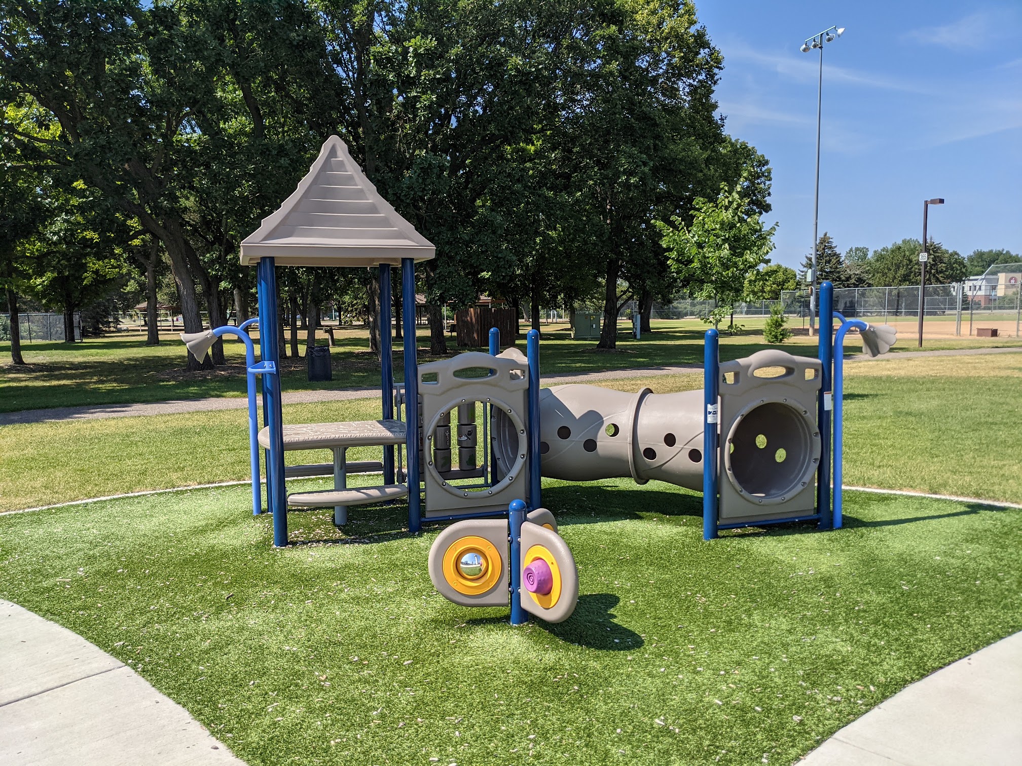 Nice, clean park and splash pad. Multiple age groups using it and having a very good time running through all the splash pad features. Lots of picnic areas or grassy areas to have a lunch. Clean bathrooms. The little ones loved it. It has street parking.