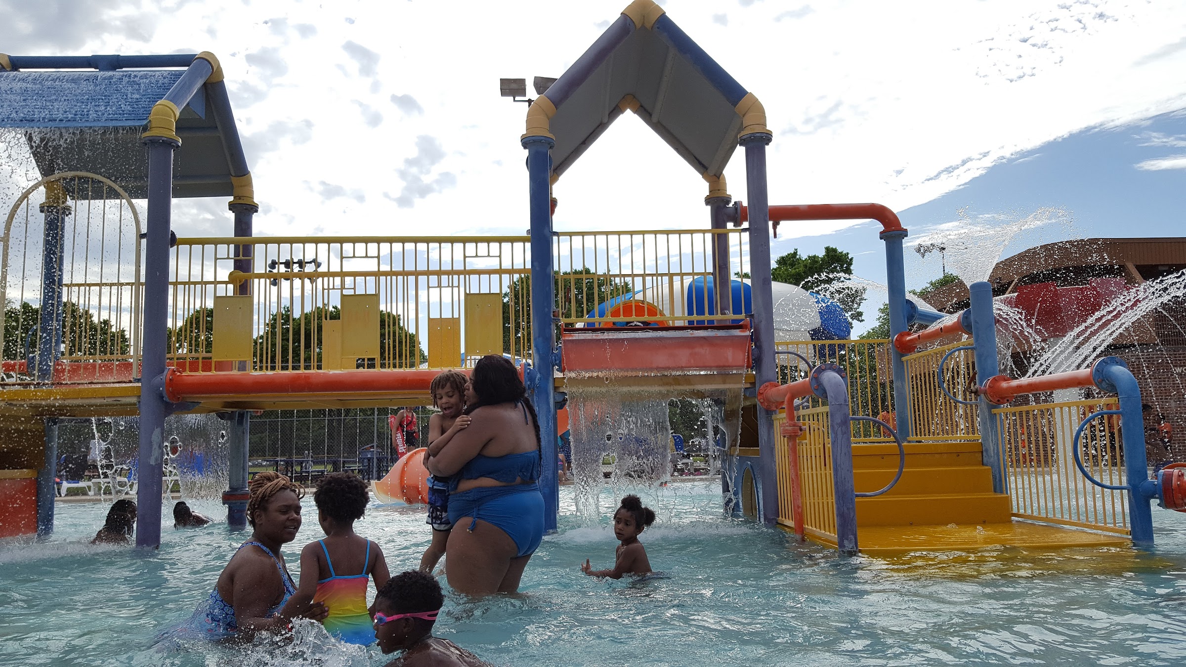 Neighborhood water park, simple but we'll kept. Free entrance.
