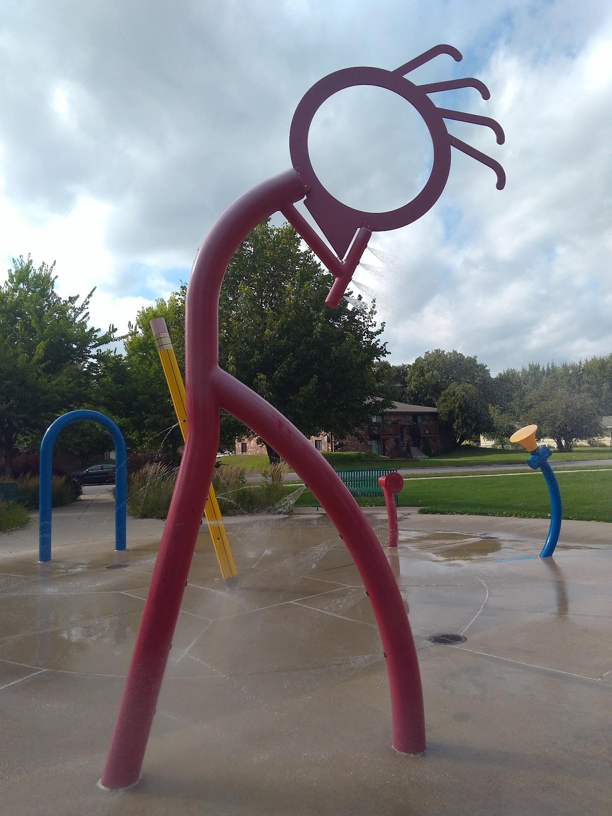Great little splash pad with a school playground a hundred yards away. Nice shaded benches for Mom and Dad to watch the kids from. Bathroom right by the splash pad.