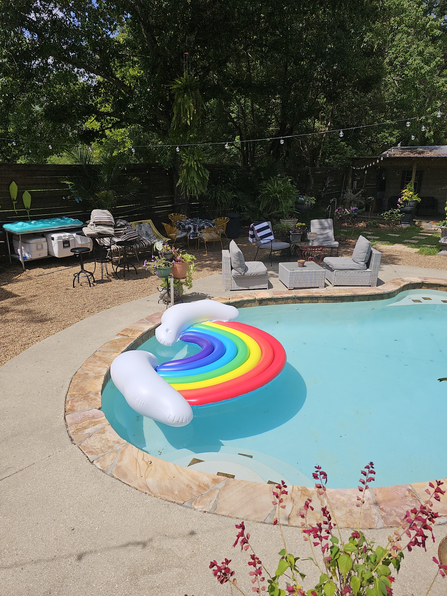 The Midtown Oasis features a private, heated saltwater pool that is available for use year-round. While specific temperature settings are not publicly disclosed, the pool is maintained to ensure a comfortable and enjoyable swimming experience for guests.