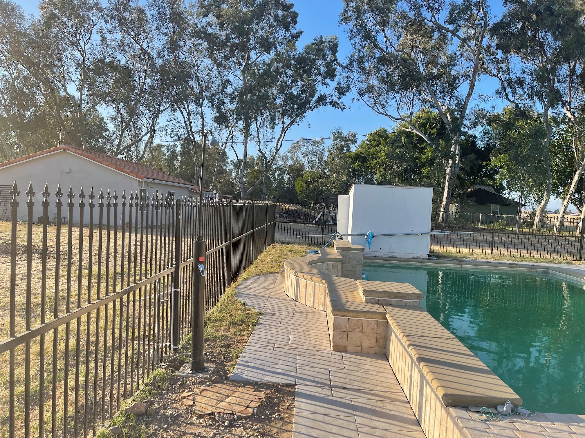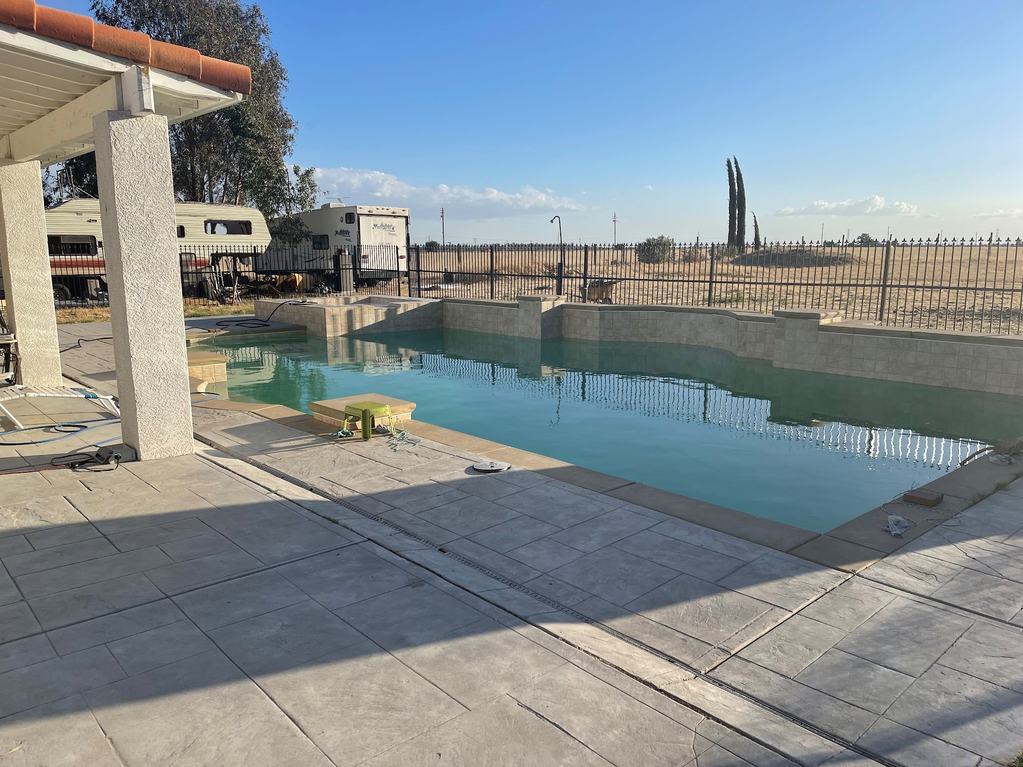 The pool for hourly rent located at 5145 Golf Rd, Merced, CA 95340, known as 'The Oasis,' offers a private backyard swimming experience. It is designed as a secluded retreat, available for hourly rentals, suitable for relaxation, family gatherings, or events in a comfortable setting.