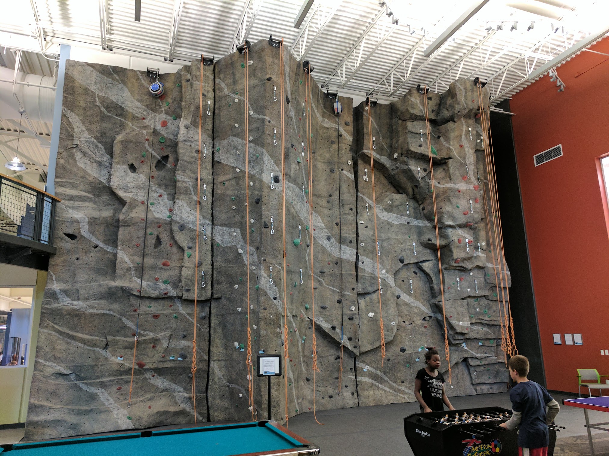Awesome pool & fitness center. More like a water park then a pool. Also super fun climbing wall with shoes & harnesses provided and auto-belay