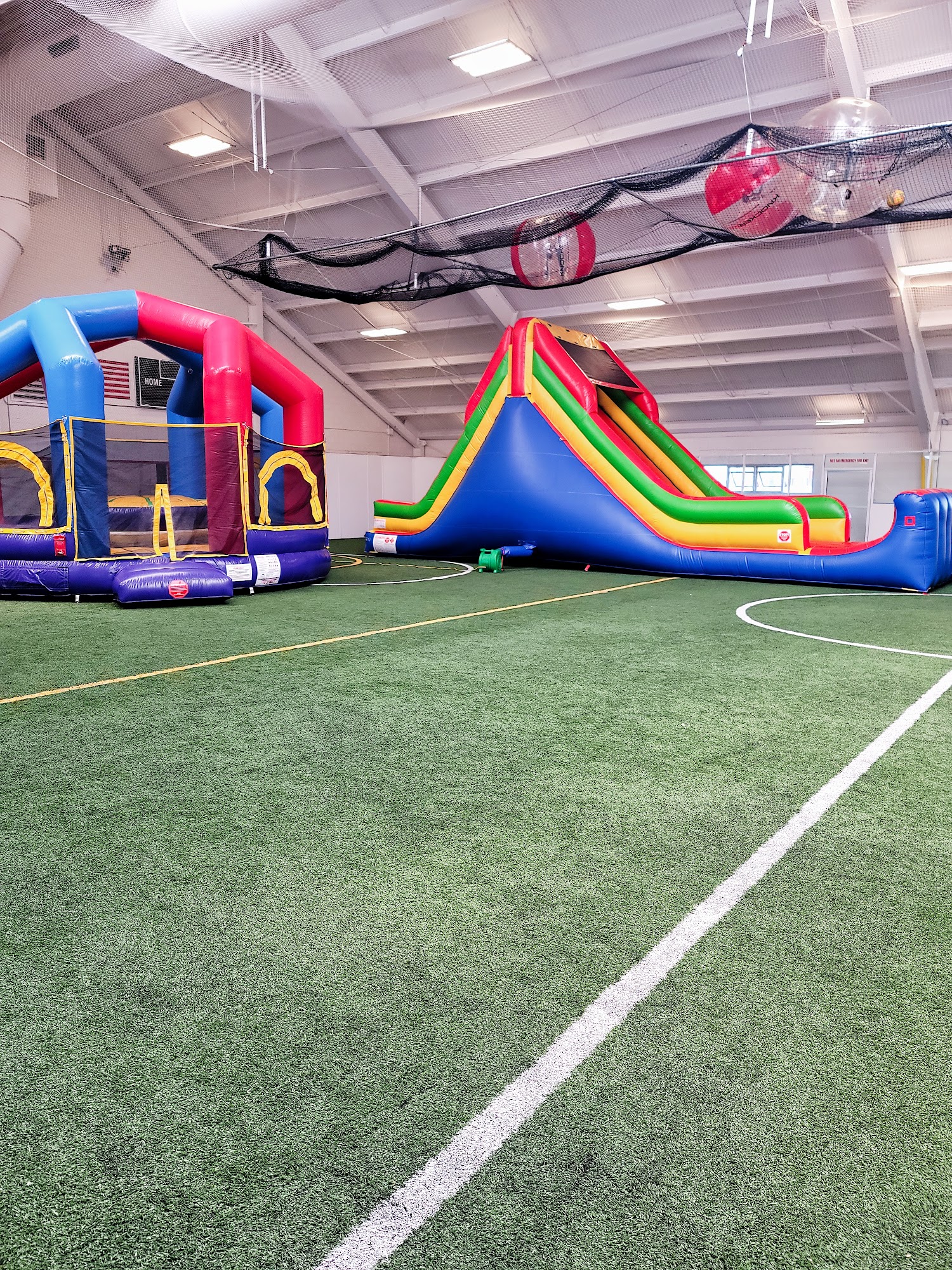 Recreational facility with an outdoor pool and an indoor field for soccer, lacrosse, and other sports.