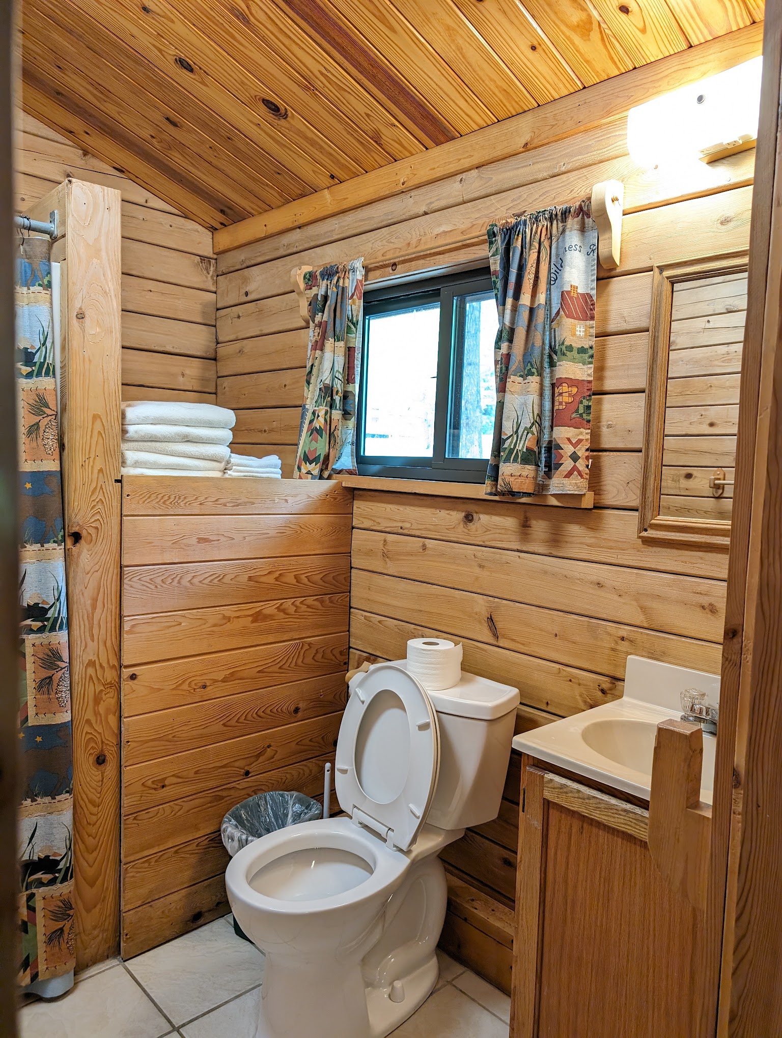 We enjoyed our stay in the Eagle Cabin. The cabin was clean and well taken care of. It was very convenient to be able to walk to all of the amenities the campground had to offer. On our visit we enjoyed the mini golf, game room, and the swimming pool. Our kids enjoyed the playground a lot also! The office employees were very kind every time we stopped in. We stayed during the week, and the whole camp was quiet and peaceful. The only improvement we’d suggest is better drainage at the dog park faucet, since it collected stagnant water. Overall, we had a wonderful time and will definitely be back again.