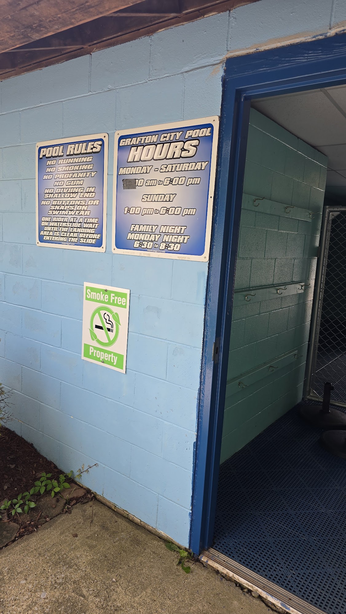 We love the Grafton City pool! The guards are kind and attentive, the water is clear and clean. The price is affordable. Currently in June of 2021 they are only open Friday-Monday.