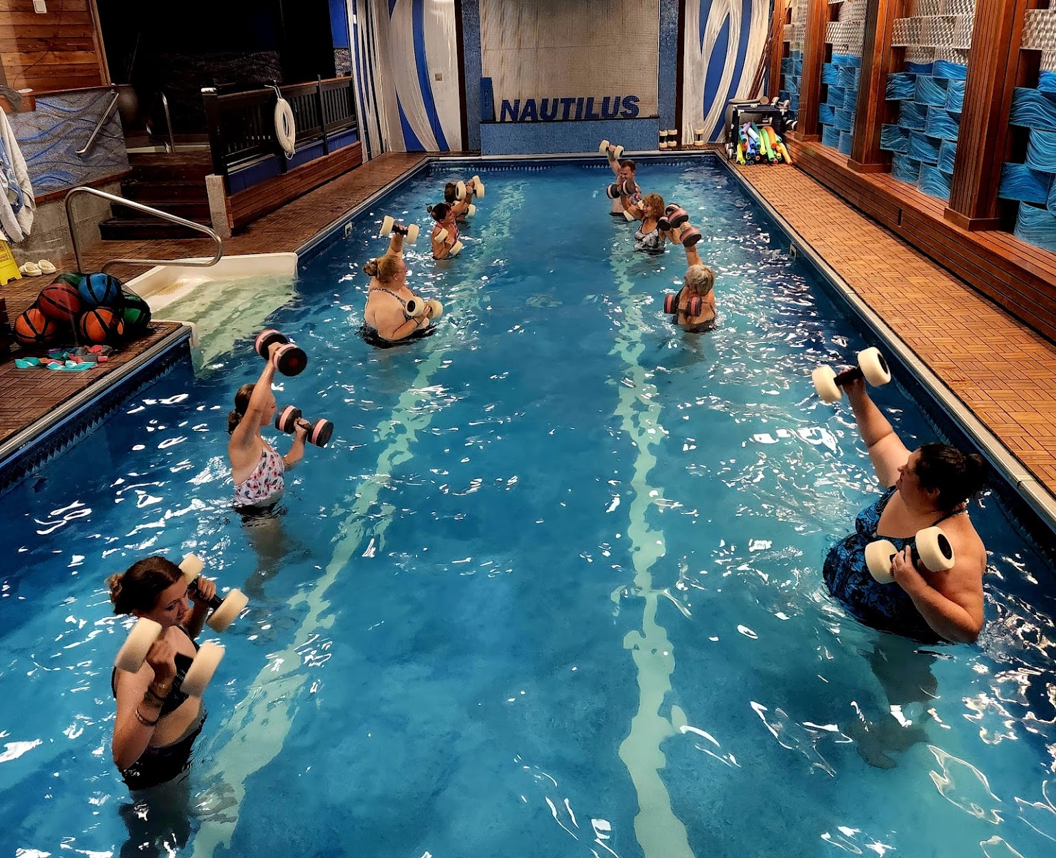 Nautilus Connection features an indoor heated pool and a hot tub. While it is confirmed the pool is heated for user comfort, the specific temperature in degrees is not publicly available.