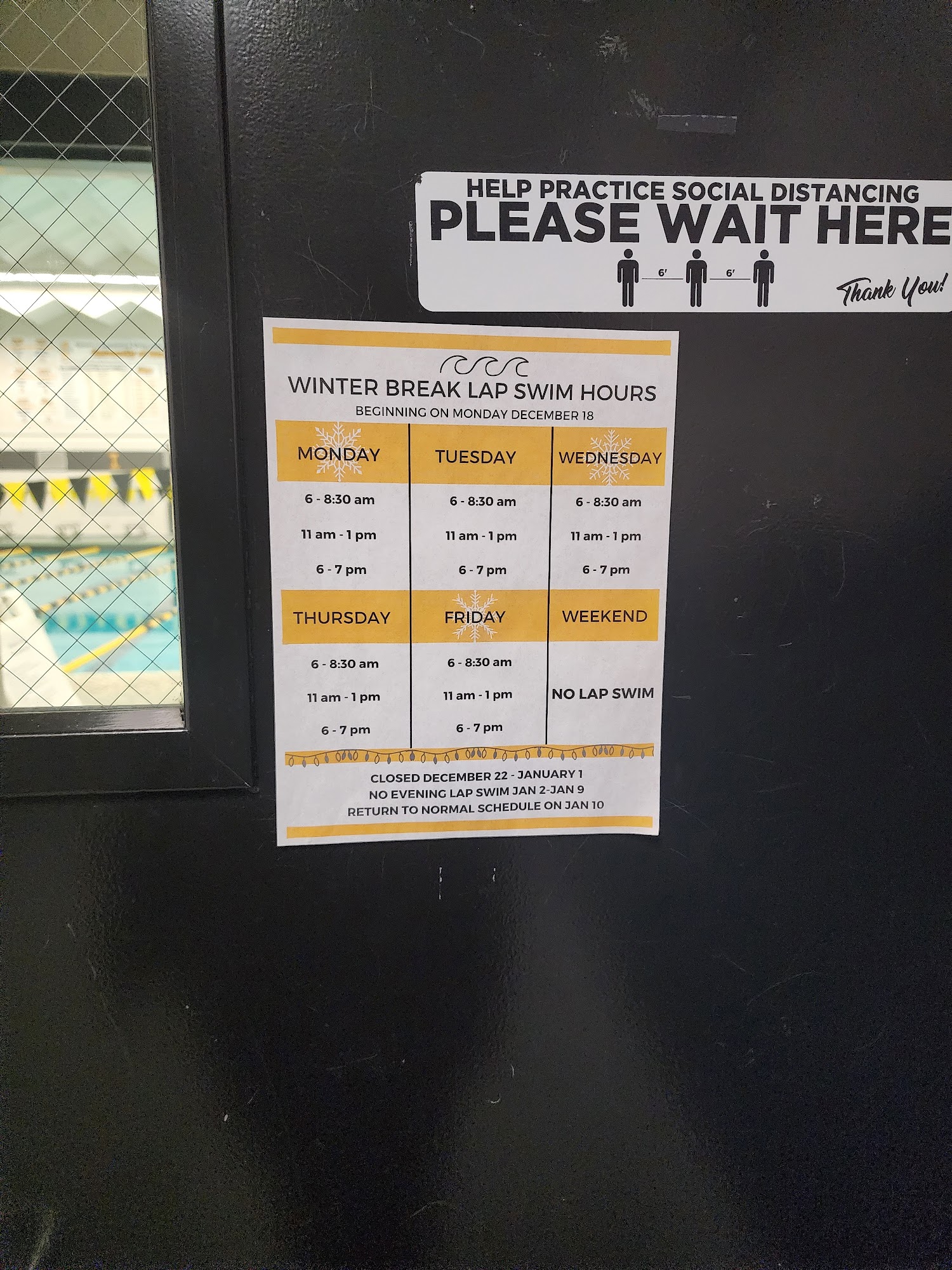 This is a pretty nice pool. Students can swim here for free and guests can purchase a one-day pass for $4. It’s a nice pool with lines in shallower and deeper sides. However, it’s not super queer friendly. There are only locker rooms for men and women. There are also no curtains or walls lining the showers or changing areas. However, in the women’s (unsure about the men’s) there is a standard and accessible bathroom stall you can change in if you want privacy.