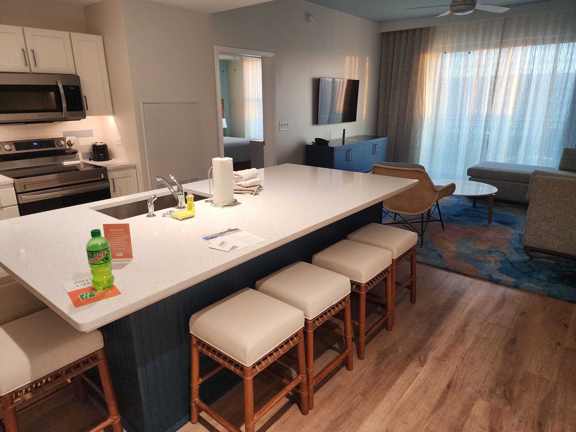 We had an absolutely beautiful 3 bed & 2 bath signature collection room and we had an amazing time. The rooms were very spacious, the kitchen was huge and the living room was a nice size. Our deck was also humongous. Although, we do wish that they did have housekeeping that’s included, they also offered a washer/dryer in our unit and all the resources for us to clean ourselves which is no problem as we are a clean family but just the feeling of coming back into a clean room is amazing. But anyways, the location was perfect; we had direct access to the ocean — the pool & hot tubs were nice….the entire resort was clean and the staff was pretty accommodating and friendly. The cafe/grocery store was convenient along with the wine nook and patio bar. We had put in a few maintenance requests and they came within an hour for both requests. I would recommend this place to anyone who is looking for a nice place to stay in Myrtle Beach.