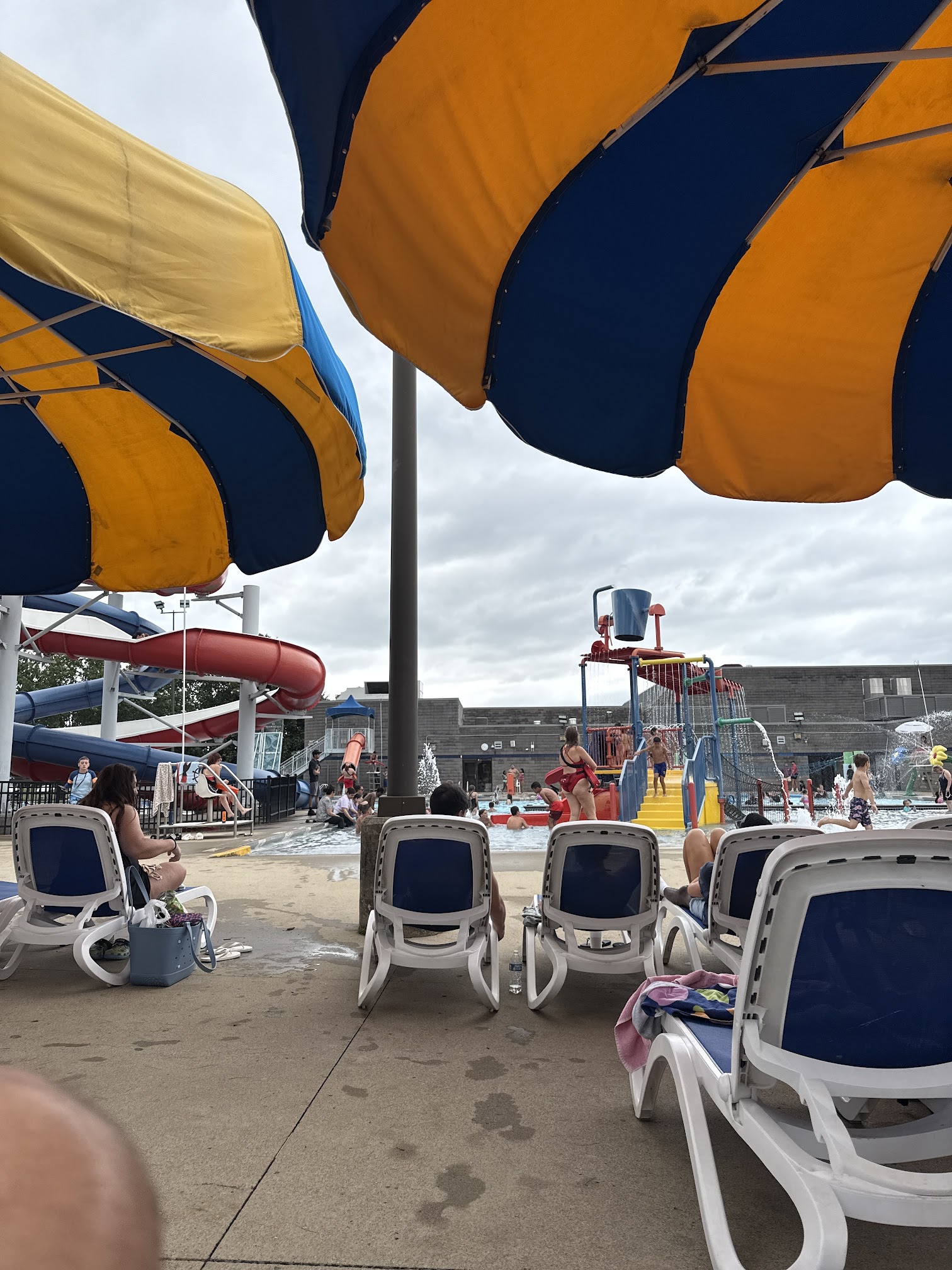 I visited on Wednesday 7/9/25 with my 3 and 1 year olds. This place COULD be so great if they put a little more effort into order and maintenance. To start, there was a sign on the window stating the water features were out of order. I asked the girl what that meant and she said the dump bucket wasn’t running and I asked her if the little kids slide was working as that’s the whole reason we went. She said yes. Well that’s not entirely true, the slide was open for use yes, but since the water was not working the kids had to slide down a DRY water slide and rely on their swimsuits to give them momentum, let’s just say it didn’t give them momentum. All the kids had to scoot their butts down the slide making the line back way up and a long line/doggy pile of kids at the bottom. The little kids here were just running rampant, parents not monitoring or just not caring. I had TWO DIFFERENT boys at different occasions PUSH my kid and I had to go tell them to keep their hands to themselves. I’m sorry I am here vigilantly watching my toddlers, I should not have to be parenting other peoples toddlers too. This one boy actually started BEATING his cousin or brother and another parent had to physically stop him all while the mom is obliviously yapping to her girlfriend 20 feet away. Sometimes there was a lifeguard by the kids area and sometimes there wasn’t but when there was, they did nothing to try to bring order to the chaos at the kid slide. The only time they ever intervened was when big kids tried to go down the slides which I did appreciate. We ate before coming but did grab a snack at the end of our visit. The nachos would have been very tasty if the chips weren’t stale. The strawberry lemonade icee was okay. The boys at the snack register were polite and efficient. Sadly, the best part about the place was the bathroom. I only visited the family bathroom, it was very large, clean, and well maintained. If only the rest of the park was that way.