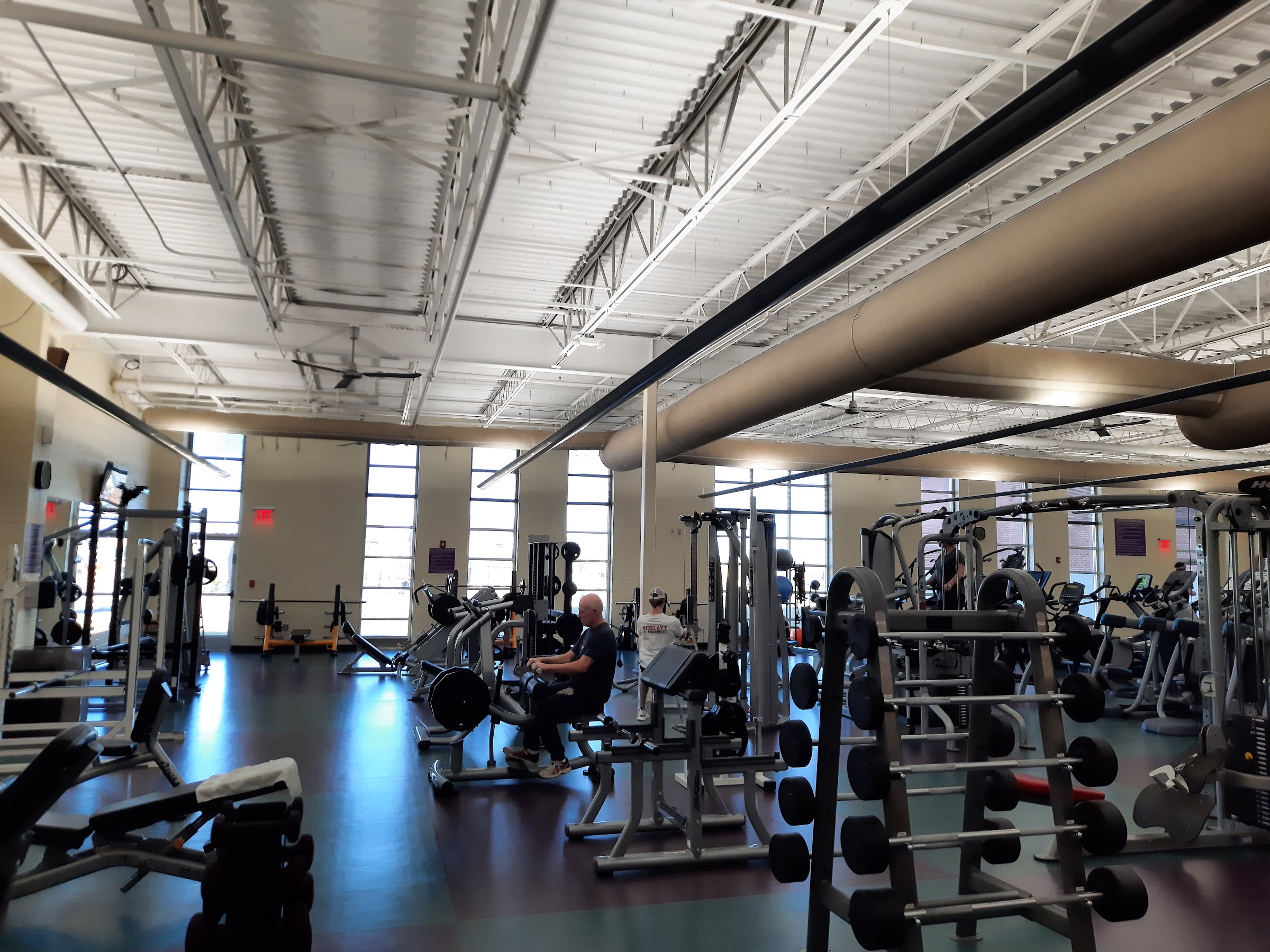 Indoor and outdoor pools, pickle ball courts and a nice indoor walking track. Also has a gaming room for your kids. Decent weight room including universal and free weights. Clean and not noisy. The annual pass that does not include exercise classes is affordable for the whole family. However my wife really liked the Zumba classes and they have water aerobics as well in the indoor pool which is heated to about 80°.