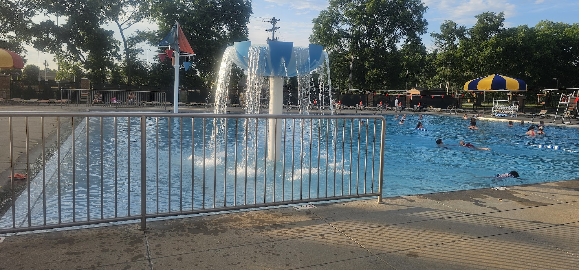 This spool is part of Williamson recreation center. It has a couple of play area where water drops down and my son loves it. It is 4 feet feet at the most and starts with half feet to accomodate kids of all ages. They also have water aerobics class couple of days/week.