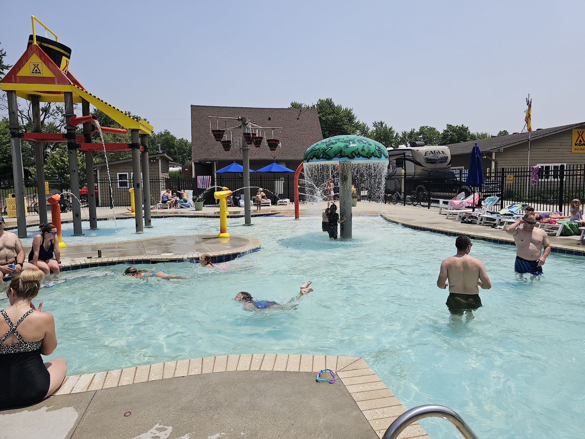 They had a very nice pool and splash pad, plenty of activities, and couple of horses and goats, new washers and dryers, clean bathrooms, the showers were good, they had new glamping yurts. They also had a dog park, a pickleball court, and playgrounds.