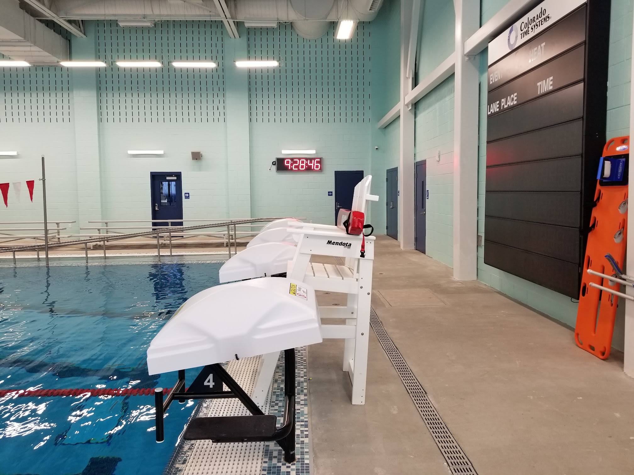 The pool is great and very clean, as well as the men's restroom. Lifeguards are stationed all around the pool, ensuring safety. For most of the day, the large open pool is available for general use, while lap swim hours are scheduled in the early morning and late afternoon. Parking is convenient with a free parking lot on-site.