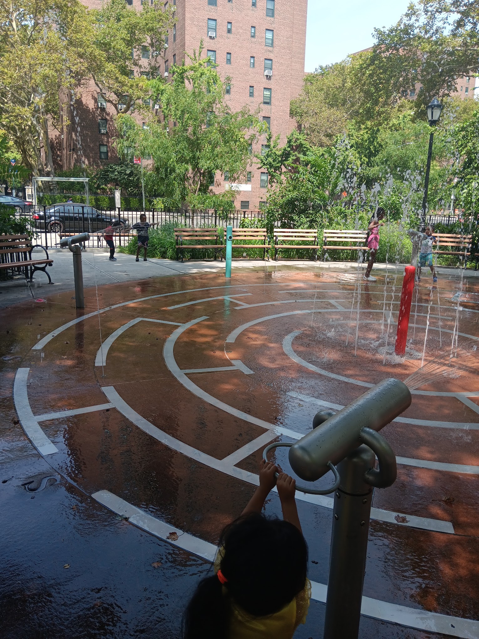 Well for the most part it is nice. For being on or near Nycha complex. Lol. My last visit here was quite disturbing. I witnessed a Lazy Baby sitter washing out a pair of poopie diapers in the sprinklers that the kids play in. Mine you it is a fully functioning bathroom 4 feet away. I grabbed my kids. And ran out of there. Keep in mind you might see some odd things.