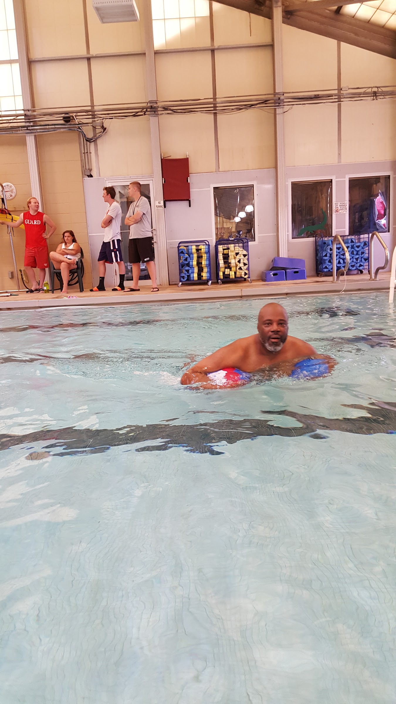 It's a saltwater pool it's great for physical therapy. They block out times for lap swimming and military personnel. They even have time blocked out to bring your family. If it's your first time call find out the hours.