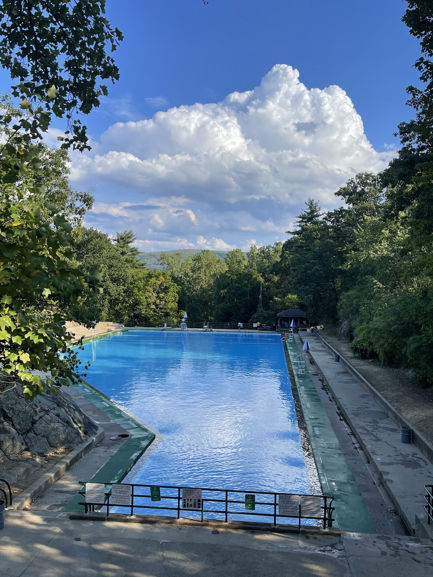 What are people saying (AI review summary)? Bear Mountain Pool is consistently praised as a large, clean, and well-maintained facility, offering various depths up to 11 feet with diving boards. Visitors highlight the reasonable entry fee of $5 per person (cash only) and $10 for parking (unless with a pass), considering it great value for a full day. The pool's location within Bear Mountain State Park, surrounded by scenic nature, significantly enhances the experience. While there are rules against strollers, carts, and outside food in the pool area, patrons understand these are for cleanliness. The atmosphere is described as friendly, relaxing, and trusting, with attentive lifeguards. Many reviewers expressed strong satisfaction, often wishing they had discovered this 'gorgeous' and 'perfect' pool sooner, and eagerly plan frequent return visits.