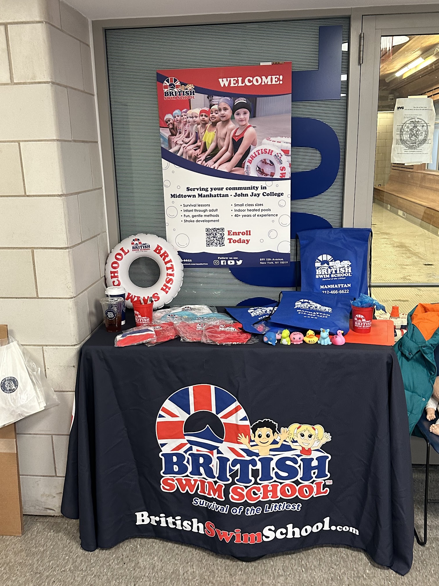 British Swim School at John Jay College, located at 899 10th Ave, New York, NY 10019, USA, offers swim lessons for all ages and skill levels. It focuses on teaching water safety and survival skills in a fun and engaging environment. The school utilizes an indoor pool within the college facility.
