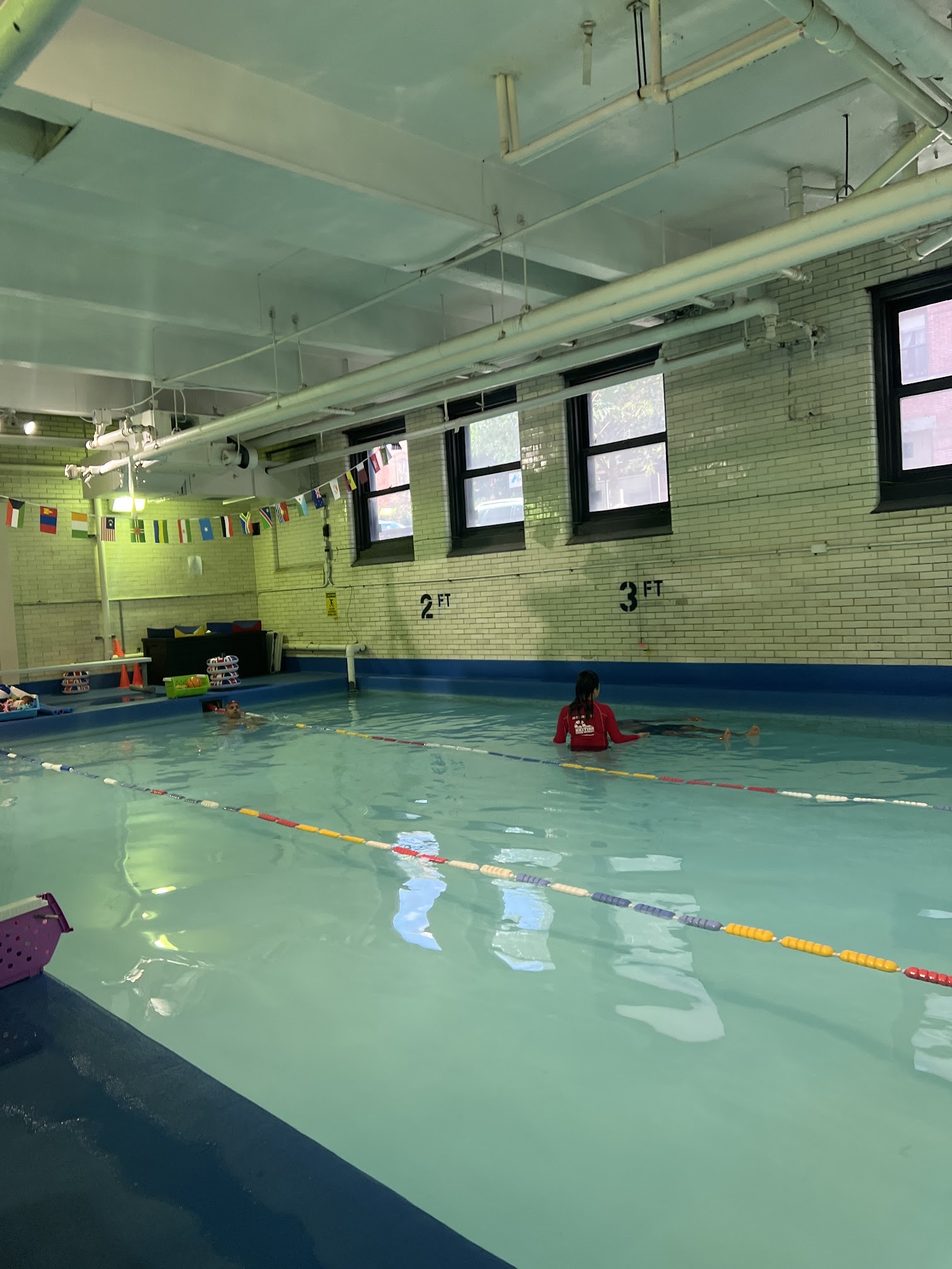 The heated pool at British Swim School at PS16 is consistently maintained at a comfortable temperature of 85-86 degrees Fahrenheit.