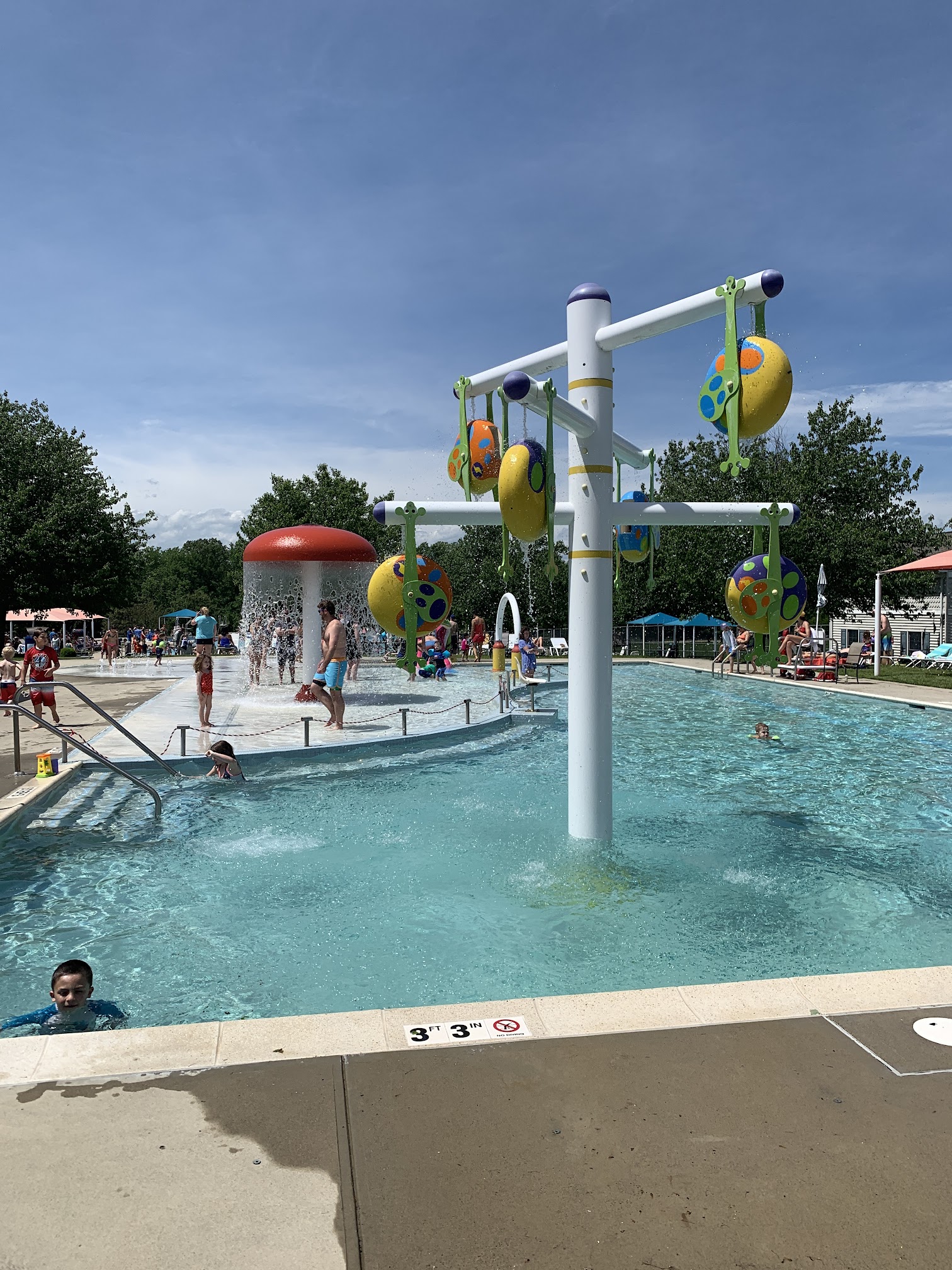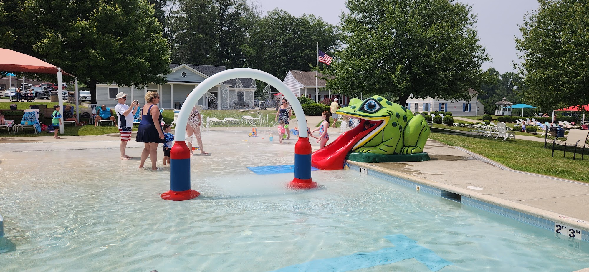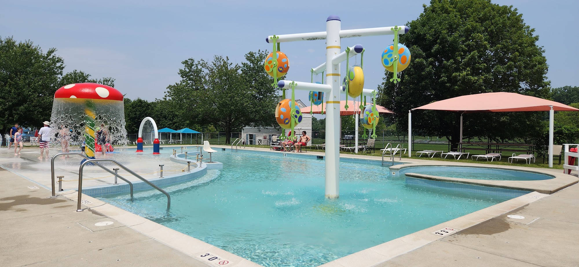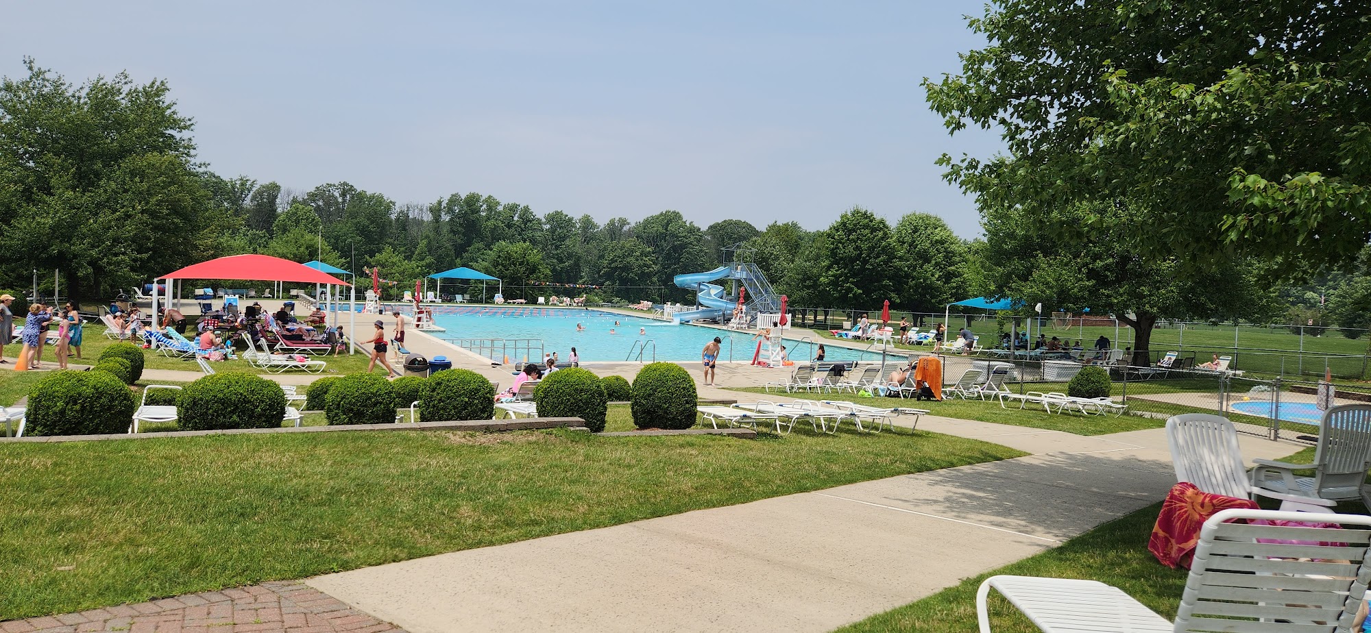 What are people saying (AI review summary)? This pool is a highly recommended spot for a summer day, open daily from 11 AM to 7 PM between Memorial Day and Labor Day. It is consistently praised for being immaculately clean, with spotless facilities including restrooms and showers. The atmosphere is generally not overcrowded, described as secluded and safe, though it can get busy on weekends, potentially making lounge chairs difficult to find if arriving late. The facility offers a main pool with a fun slide, a separate splash pool, and a kids' pool (up to 3.5 feet) with its own small slide. Adult-only swim periods are available for 15 minutes every couple of hours (1 PM, 3 PM, 5 PM). Amenities include plenty of lounge chairs, showers, changing rooms, and tables/benches under canopies. A small snack bar is on-site but accepts cash only. Lifeguards are always on duty, staff are kind and courteous, and the venue can also host private events like birthday parties. Visitors note the experience is inexpensive and offers great value.