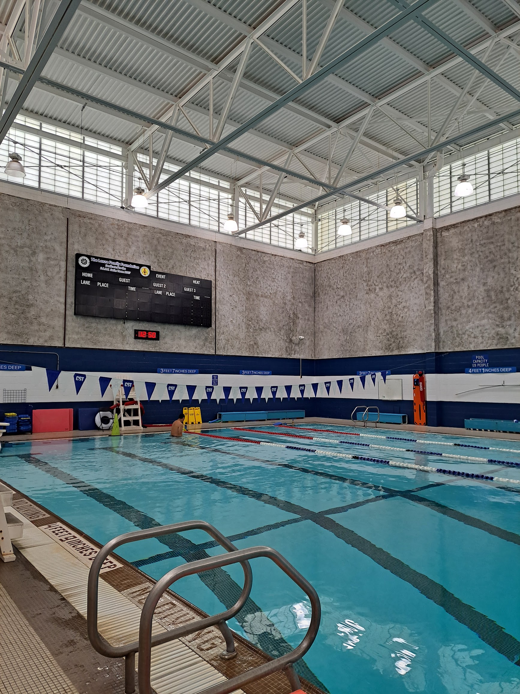 What are people saying (AI review summary)? This facility is highly recommended for its clean, heated pool with pleasant water temperatures, offering a variety of swimming equipment and classes for all ages, from newborns to adults. Reviewers consistently praise the professional, friendly, fun, and patient instructors and coaches for activities like peewee basketball and advanced swimming, noting their effectiveness in challenging and educating participants in smaller, skill-based groups. The facility itself is very clean, featuring well-maintained bathrooms with lockers and Suitmate dryers, as well as family-friendly changing areas. Staff and security are described as professional and nice. With budget-friendly options and a wide range of activities, it's considered a cornerstone of the community, offering something for everyone.