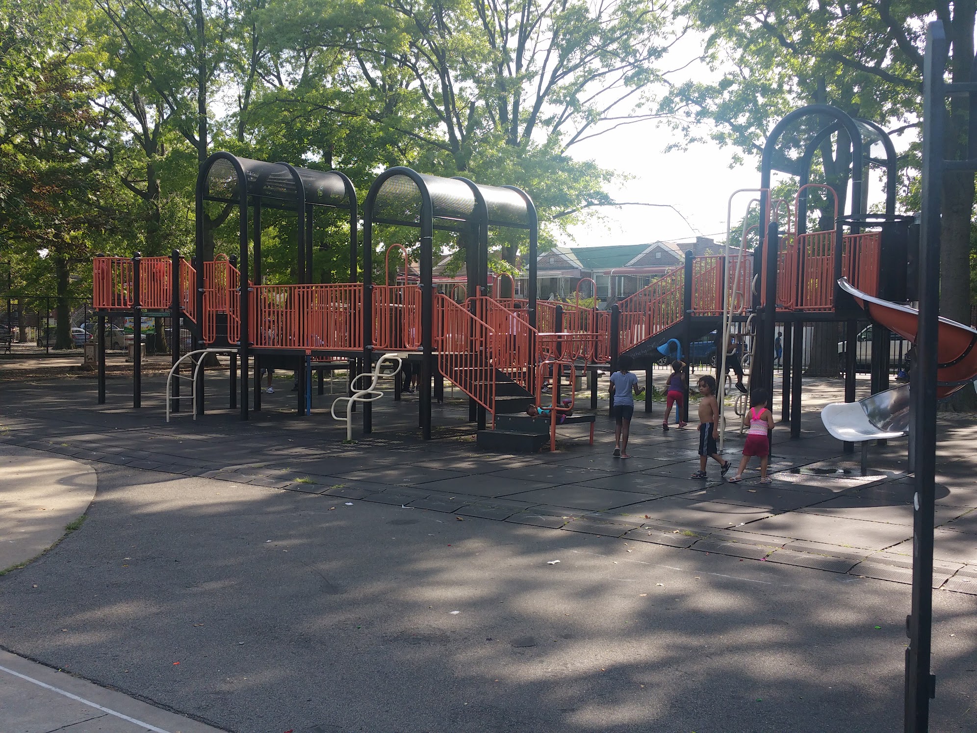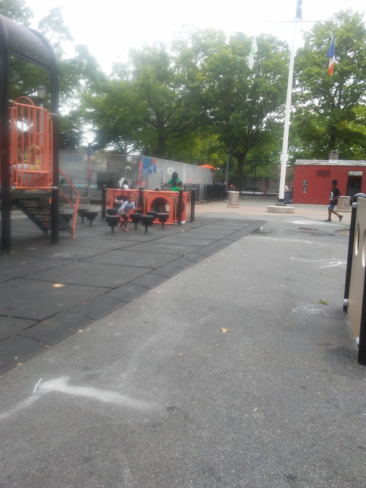 There is a neighborhood mini pool here. There were two lifeguards on duty. We had the pool to ourselves because it was overcast and had rained earlier. The water quality is tested. The restroom was clean. There were small children playing in the park and young men playing basketball. Quiet place.