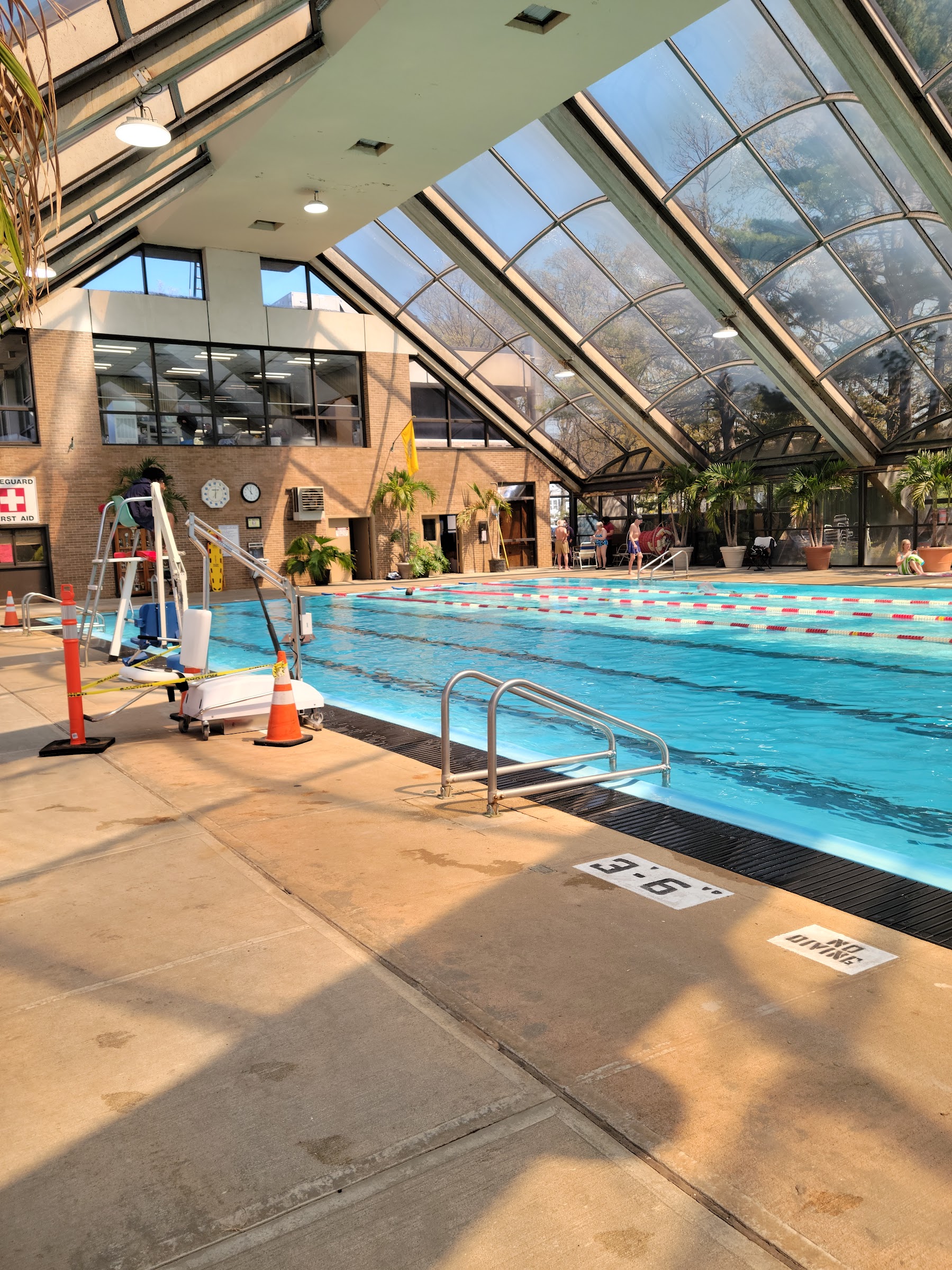 Such a beautiful, clean, well maintained pool with warm water! The changing area is very clean. I totally recommend the aqua zumba class with Michelle! She's fabulous and the class is so fun!