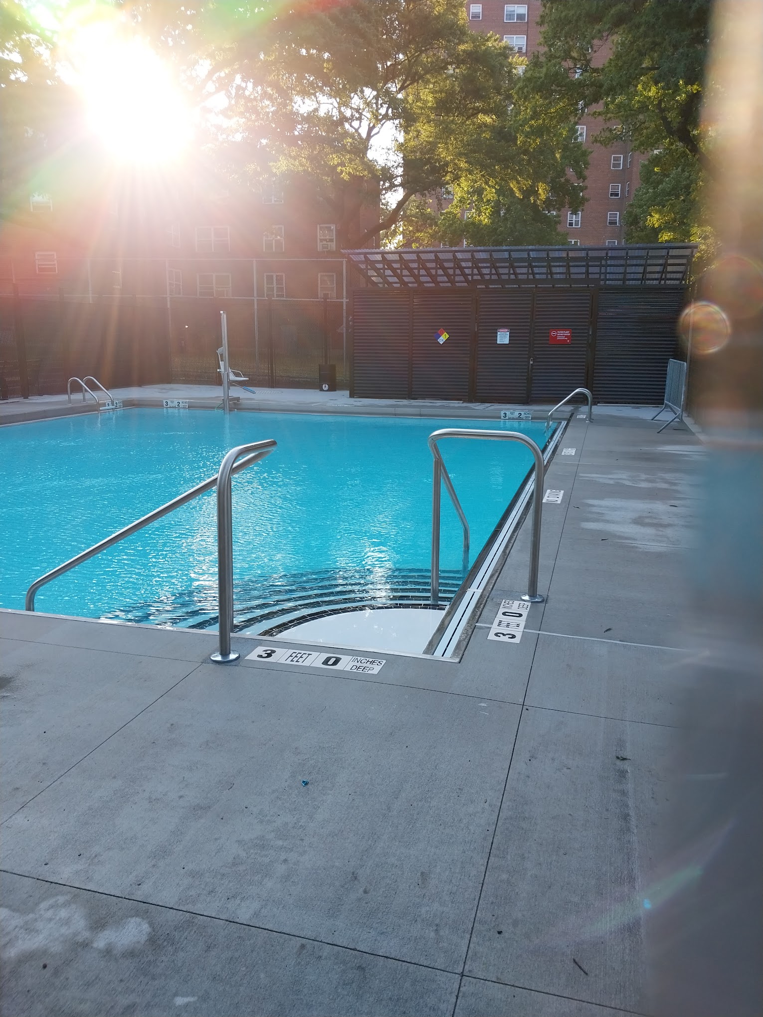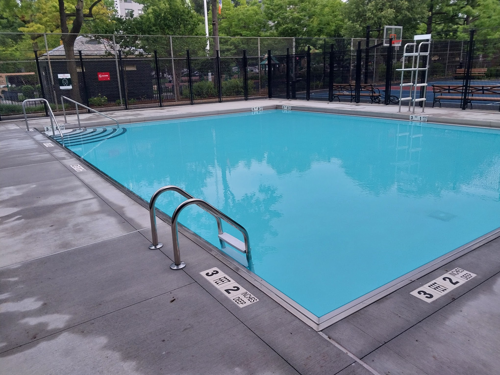 What are people saying (AI review summary)? The park has been remodeled, featuring beautiful trees for shade, private seating, three water sprinklers, two jungle gyms, a climbing rock, restrooms, a water fountain, and dedicated caretakers for opening and closing. It also includes open fields for sports, a handball court, and a small swimming pool, making it a good option, especially when it's hot. However, there are significant criticisms regarding staff indifference to destructive children, littering, and unsupervised dangerous activities like lighting fireworks, with staff reportedly stating they only monitor the pool area, leading some to view it as a last resort.