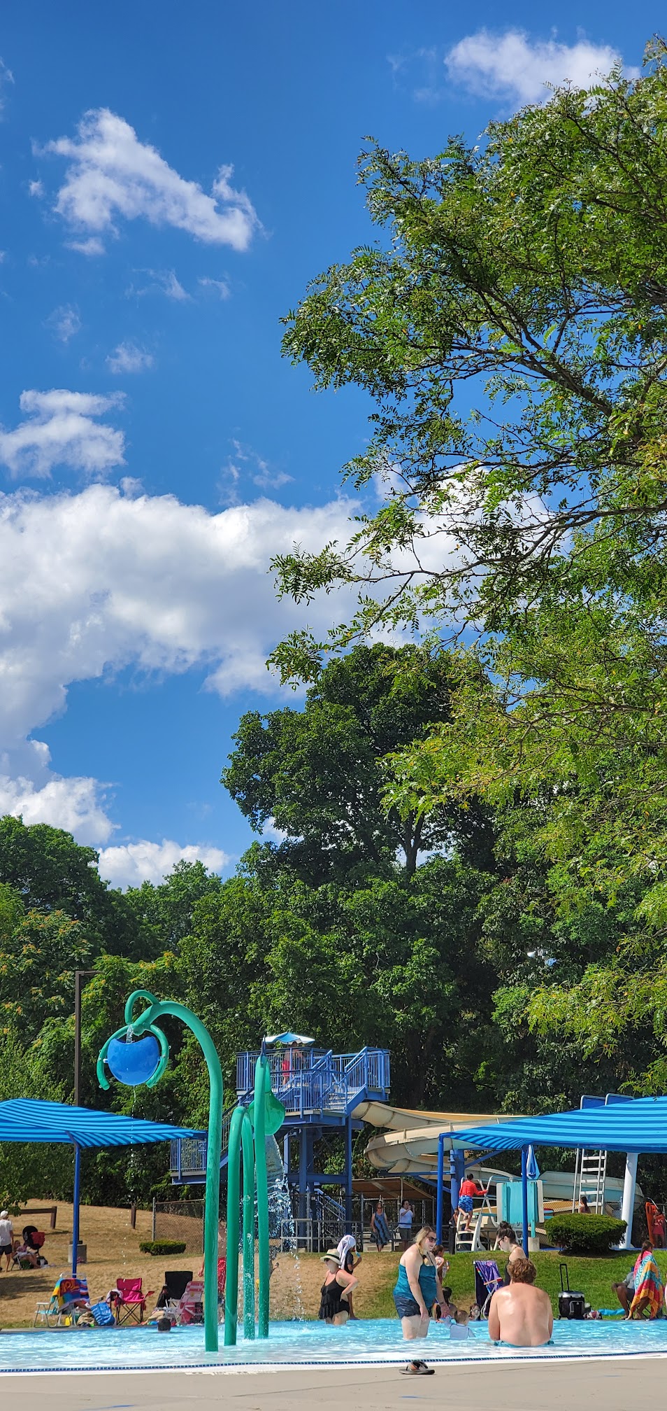 This pool has something for everyone. There is a small water park for toddlers and little ones. It has a slide for the more adventurous kids and it has the main pool, which is big. There is parking and it is affordable. Bring your chairs!