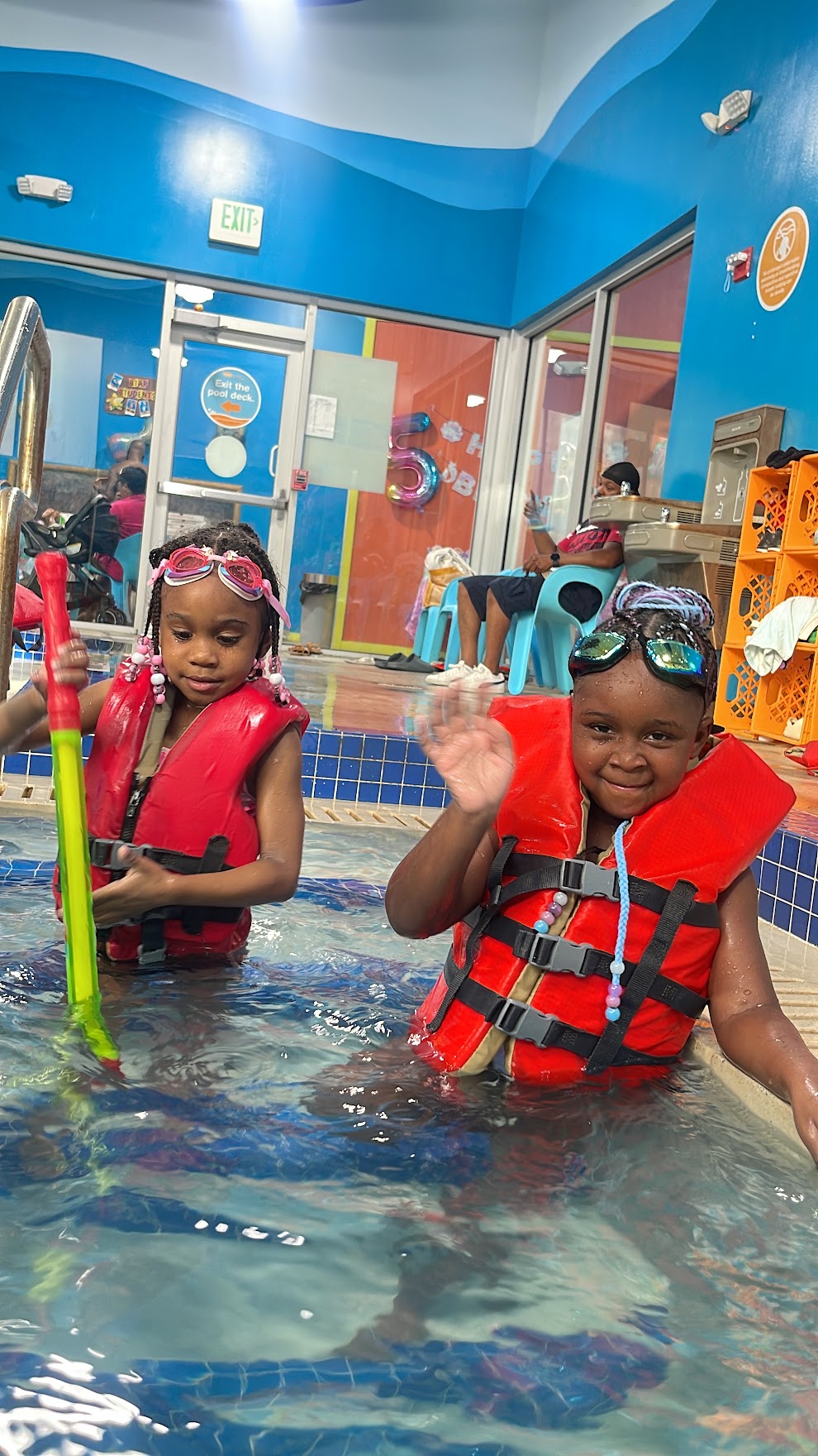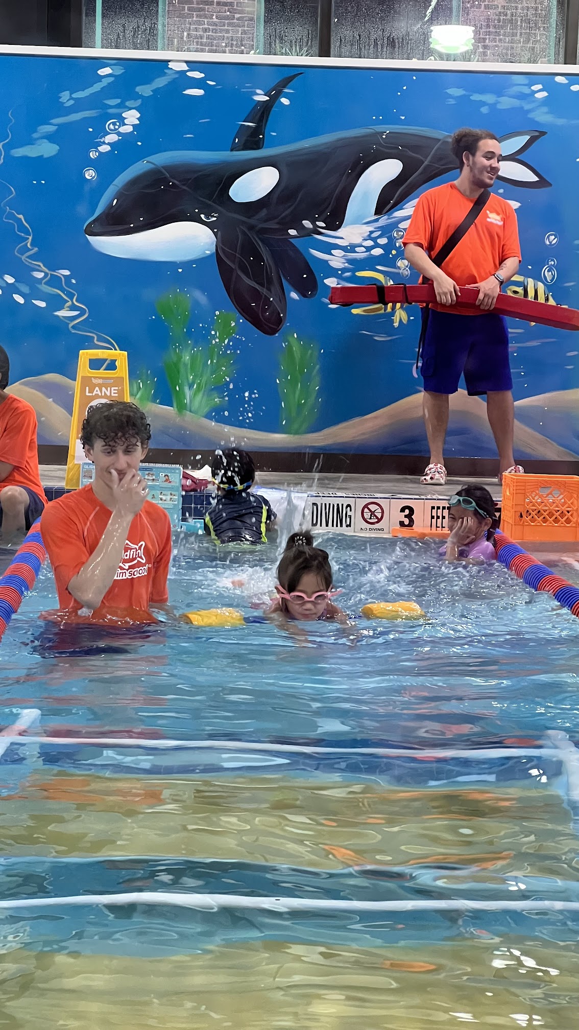 I love coming to goldfish swimming school every week, even more than my daughters. Is a great experience seeing my kids learning and having fun at the same time. This place has a Hawaiian decor inside that will make you feel like in a tropical island. I love it! The instructors here are all very well trained, very enthusiastic, and take security matters very seriously. They have everything set up and well organized for you. Bathrooms, showers, hairdryers, changing rooms and a great team to teach your kids and provide a great experience for all. P.S. the school doesn't have a big sign but just in case you need to find it... is located next to Ultra beauty store. 😉