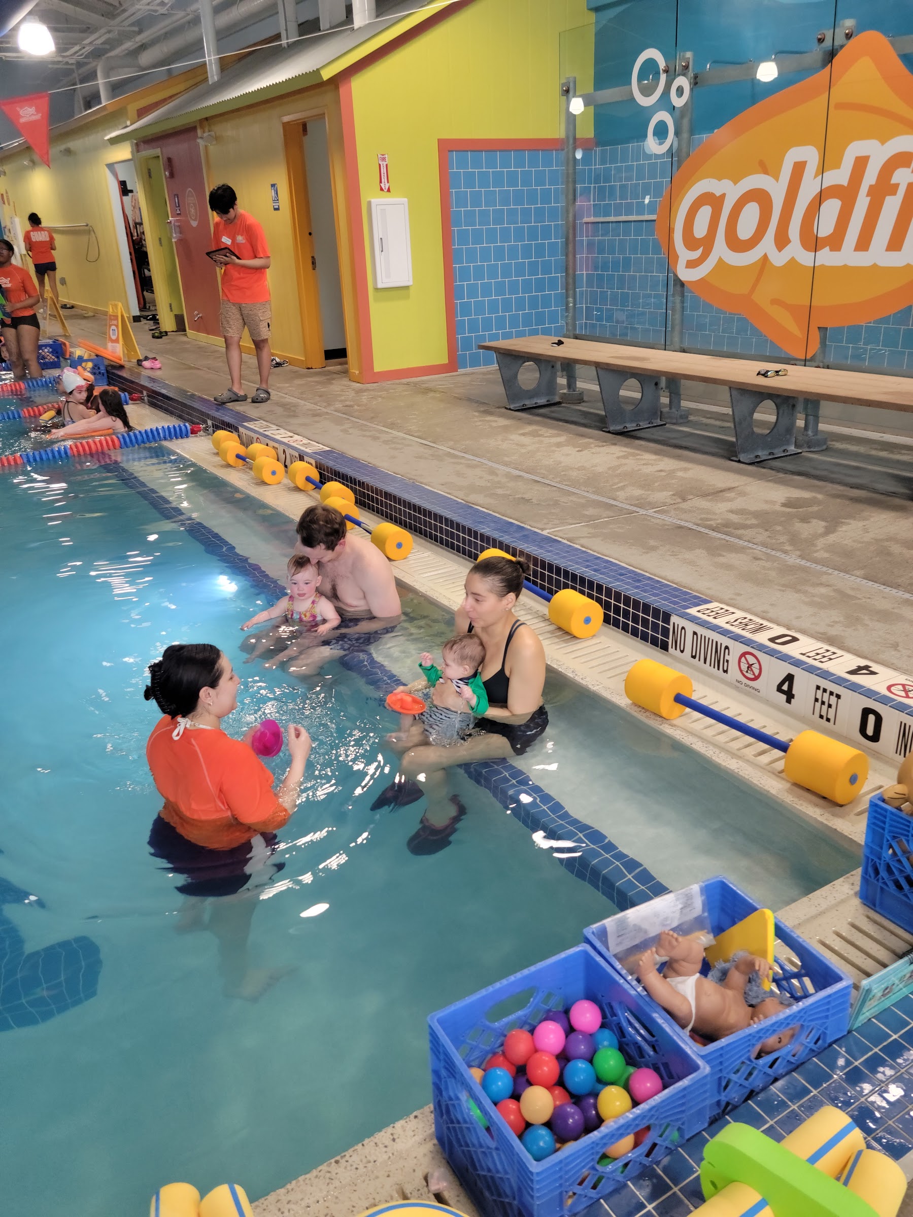 My family and I love Goldfish swim school because it is a perfect space for young children. The structure Goldfish swim school provides makes it easy for everyone to enjoy and know their place. As a parent I love being able to sit in the viewing area with a clear view of the pool. The division between the pool and the viewing area allows the children their own sense of independence while still being able to get the reassurance that their parent is there. I enjoy that Goldfish swim school is literally just a swim school and not a pool in a random facility being used to facilitate lessons. The climate control is something I enjoy as it allows for swimming all year around without worrying about the water/environment being too cold. The school has showers and changing rooms as it makes it easy to navigate the showering and changing of little ones, which can be overwhelming trying to accomplish in locations that are not created for small kids. The instructors have been great. They provide feedback at the end of each lesson and so far they have been very in tune with each of my child's personalities which is so interesting to see being that they only spend 30 minutes together each week.