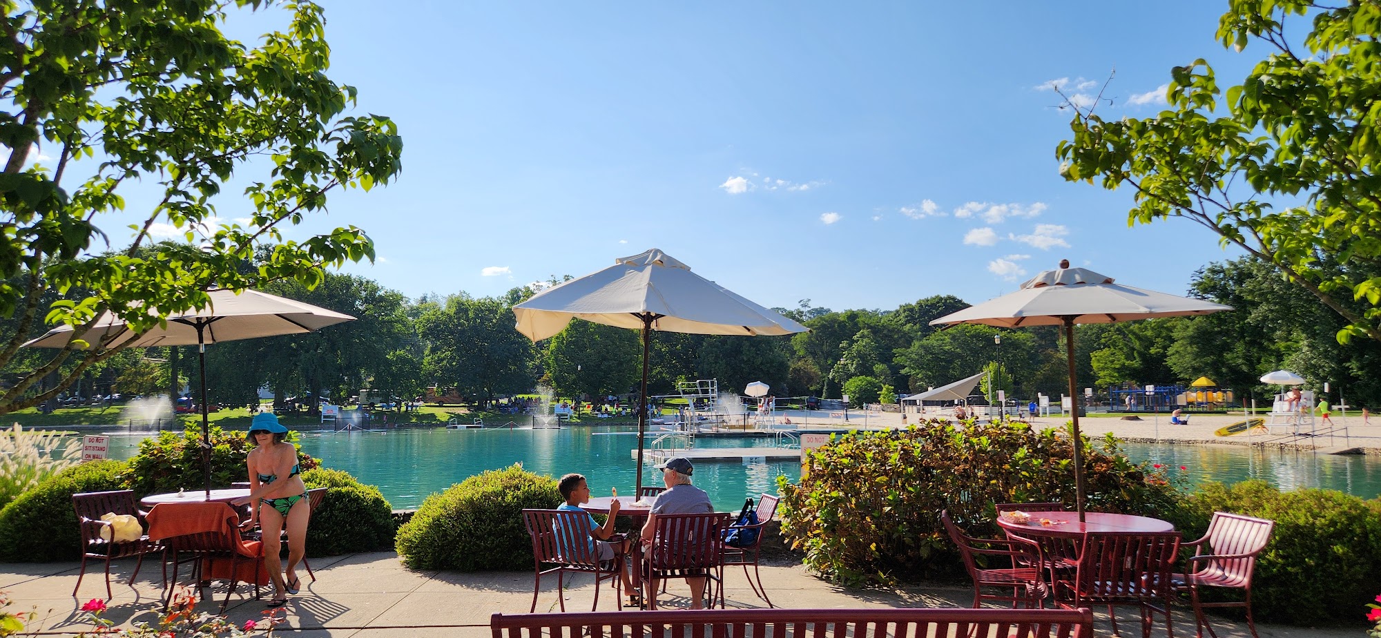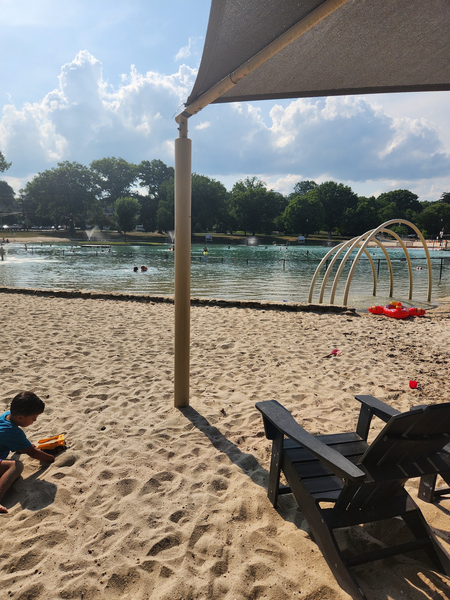 An amazing and unique town pool that has the feel of a lake. It has something for all ages. A word of caution do not underestimate how big this pool is if you plan to do a swim across the entire thing.