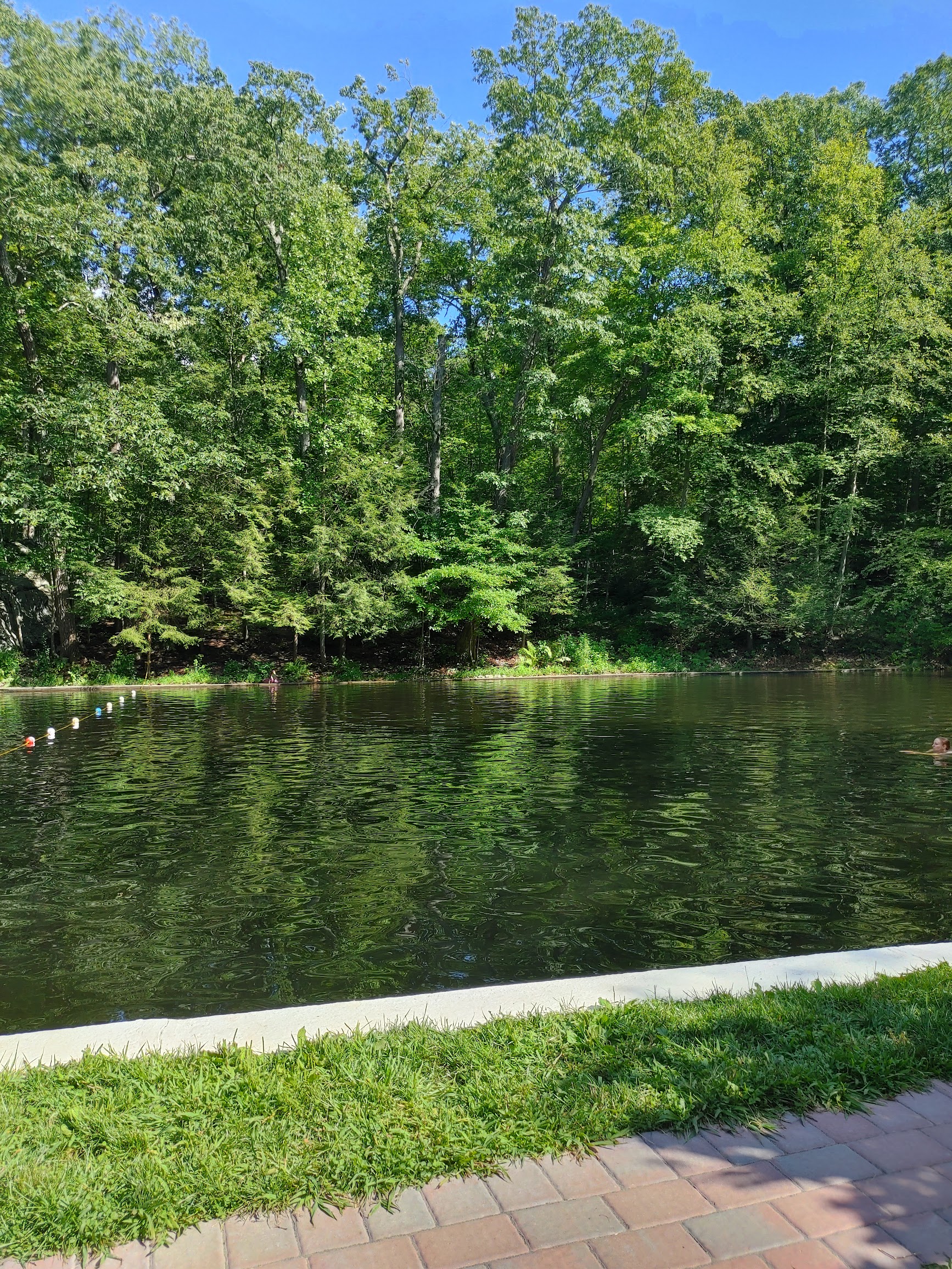Such as lovely day spent in and out of the water. We found three lounge chairs in the shade + a picnic table for lunch. Everyone was friendly and kind and helpful. We enjoyed swimming in the natural pool, which feels like a tiny lake, the water is very refreshing. Great for kids to seniors alike, truly a little gem and a beautiful setting.