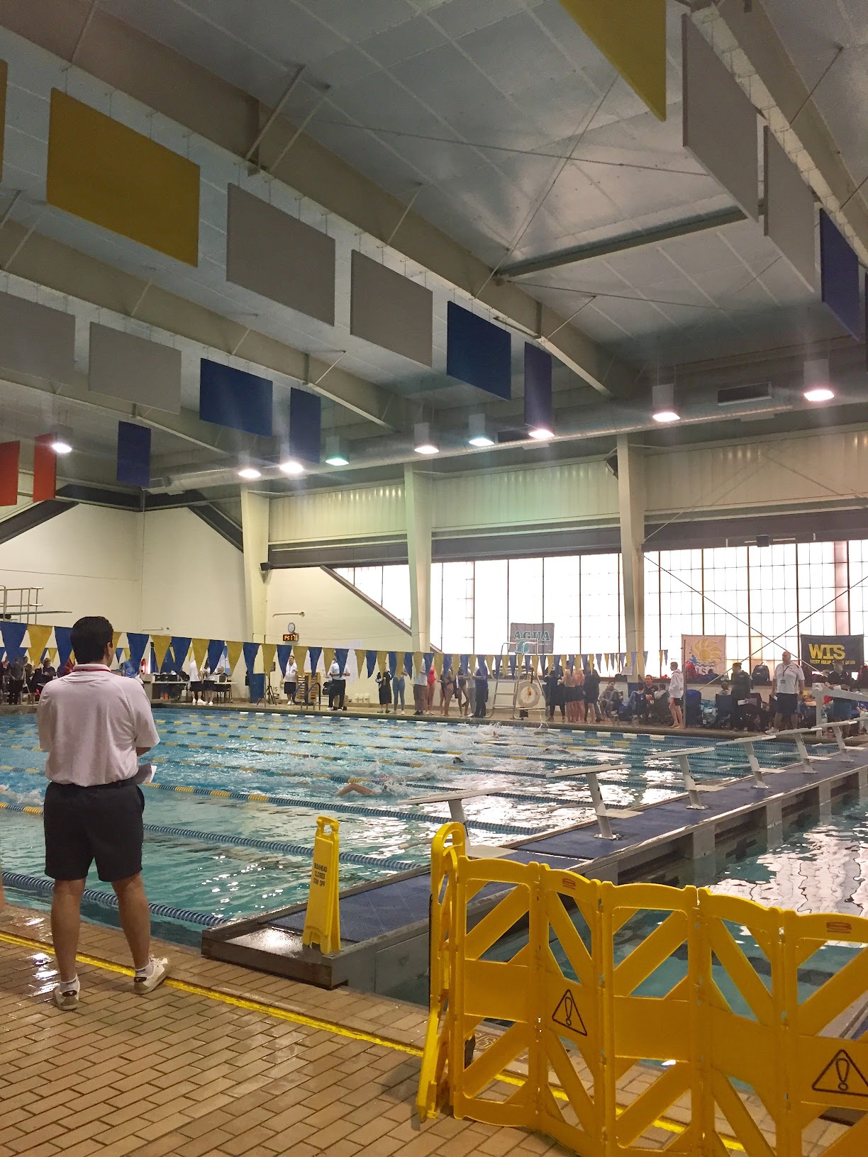 Nice Olympic style pool. Points drop because the scoreboard is very old school. There's no names just lane and time. Also the bleachers are very uncomfortable. Could do with a back to them.