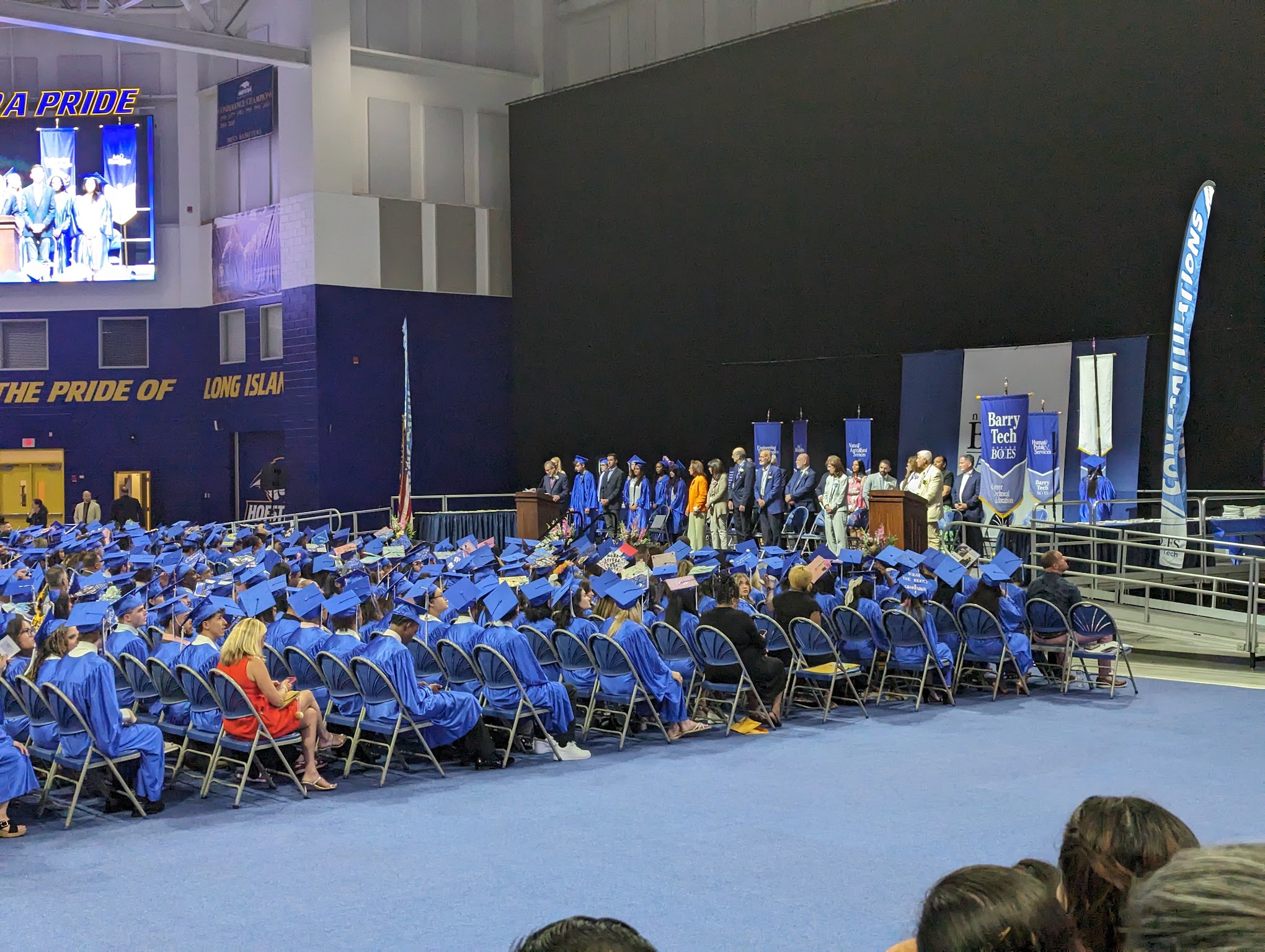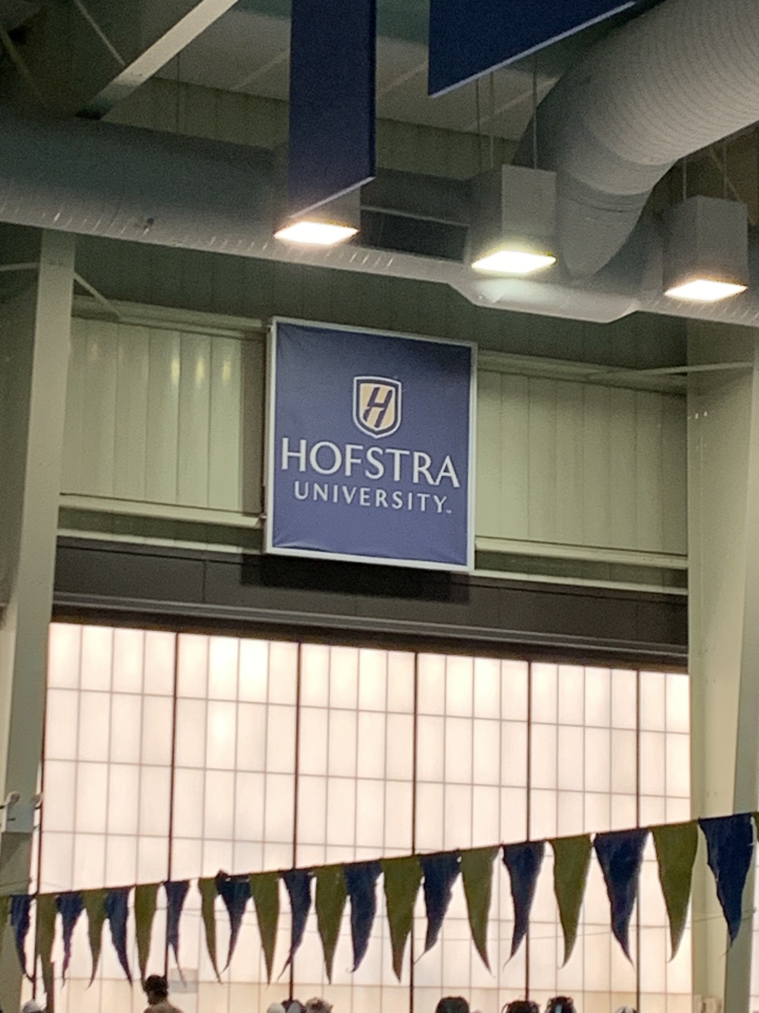 It was cramped and the seating is not comfortable. The seating is wood bleachers. If you are sitting here all day for a swim meet prepare yourself for a backache at the end of the day. Hofstra should really upgrade the HVAC system it is very warm. I have been here in the Spring and the Fall and it is always hot in the building. I know swimmers want it hot but this extreme.