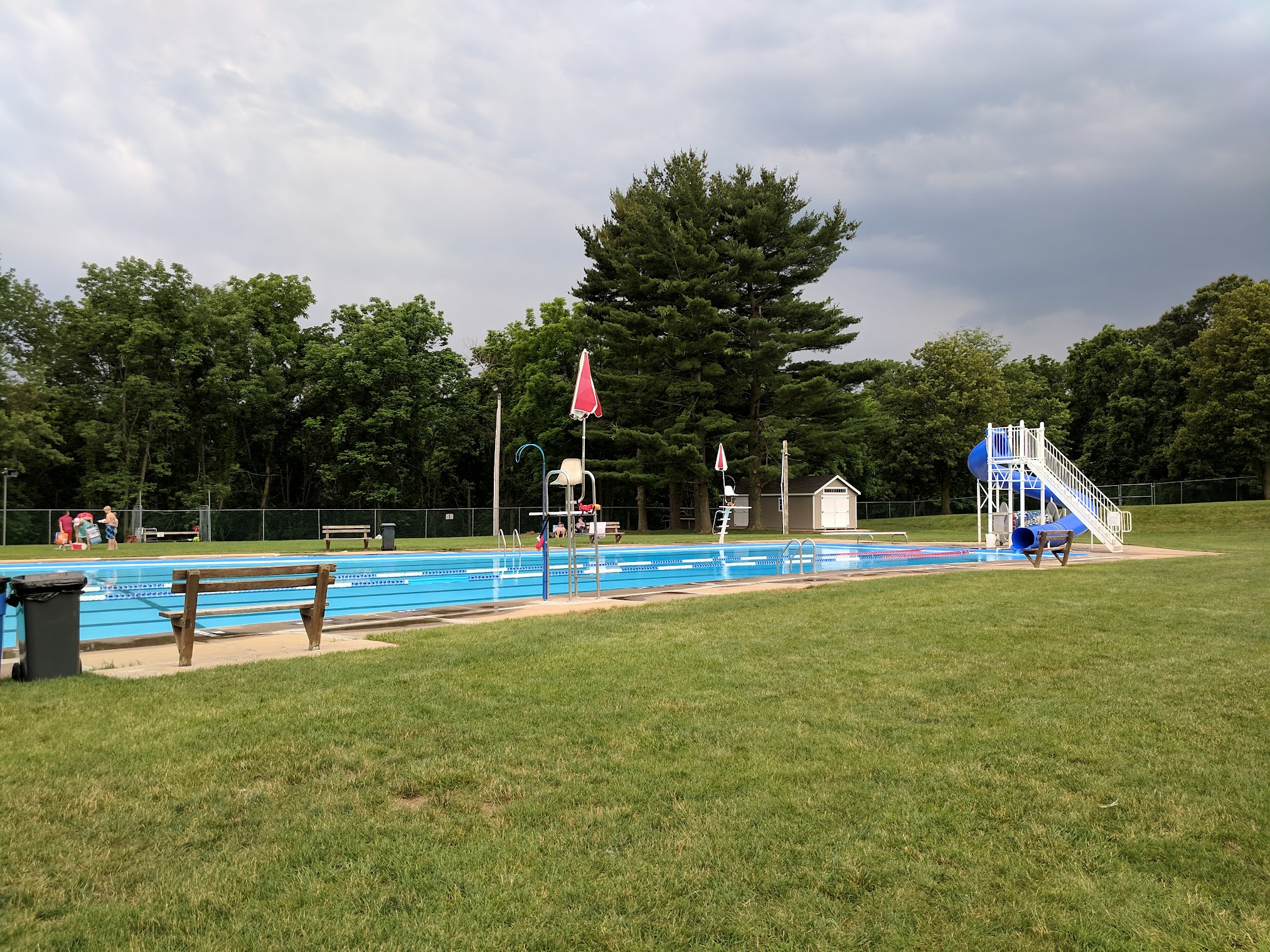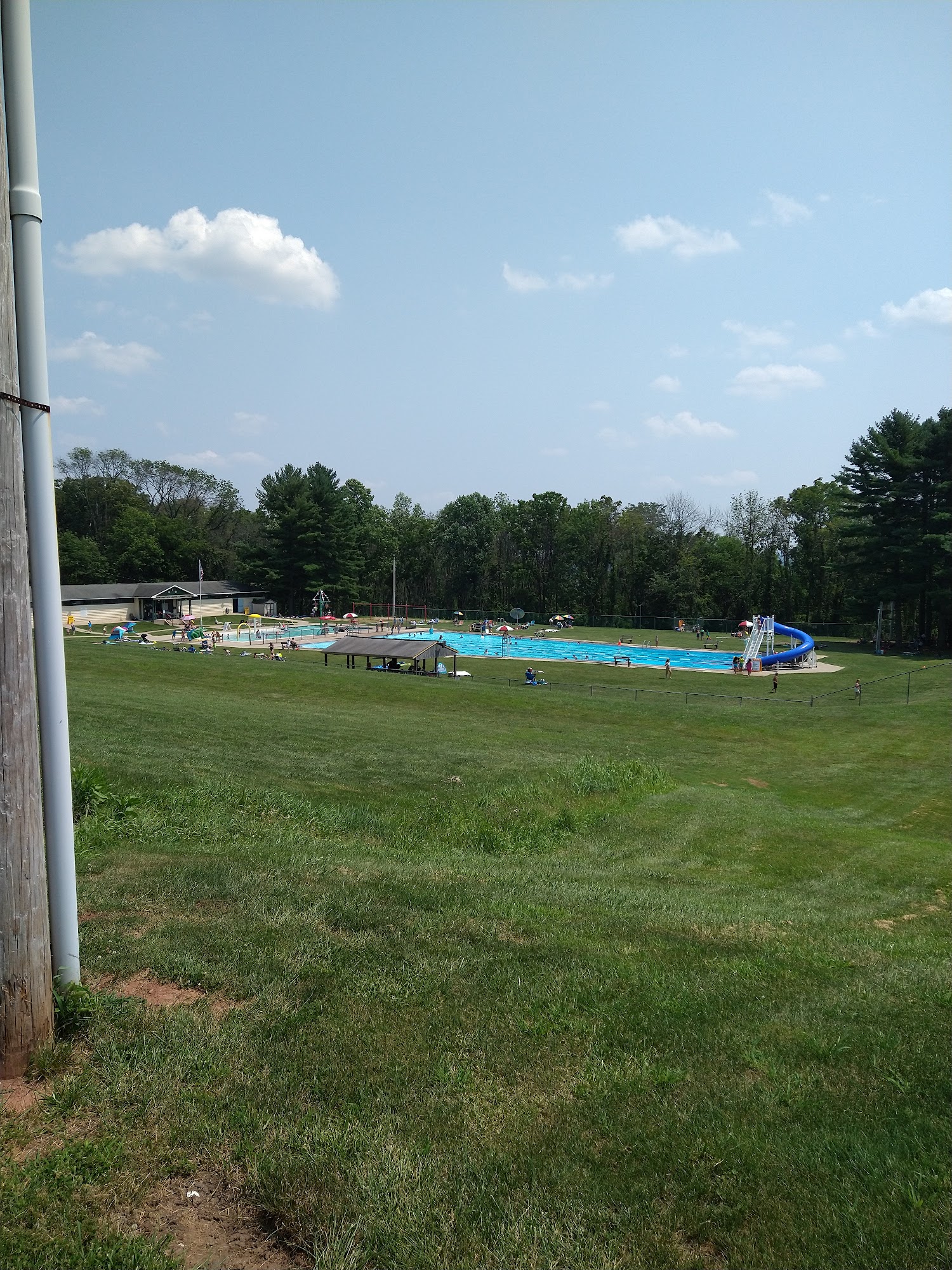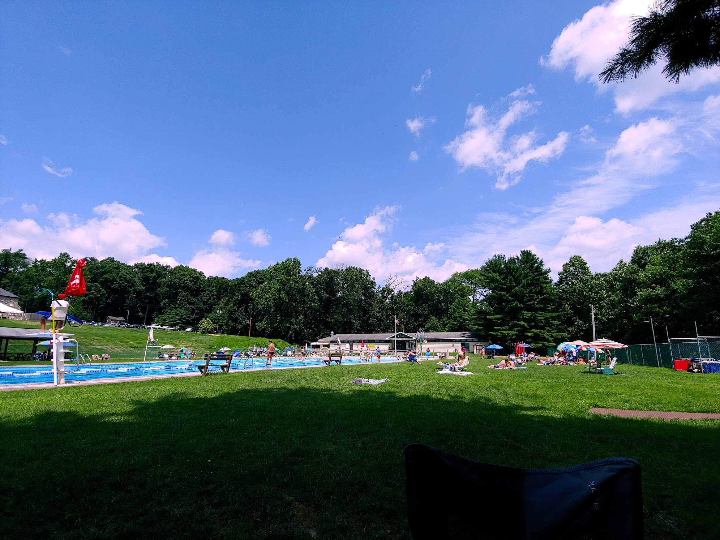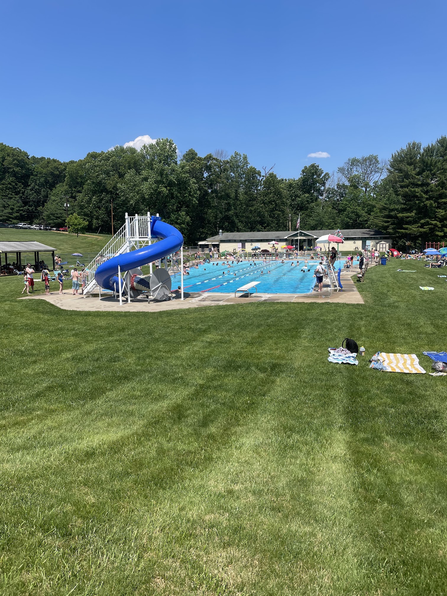 The nicest and cleanest pool around! Friendly staff, (multiple) attentive lifeguards, a playground for the kids. Clean and decently sized changing rooms/locker room area. The pool itself is huge (with a diving board and slide) and there’s a separate section for the toddlers that mimics a mini water park area. The lawn area is very well kept. There is a small pavilion and concession stand. Honestly can’t get much better! A few things to note: food choice is limited. Bring your own chair and umbrella (there are one or two trees for shade but those areas fill up quickly) . Regardless, this place is a hidden gem. 100% the best pool around!