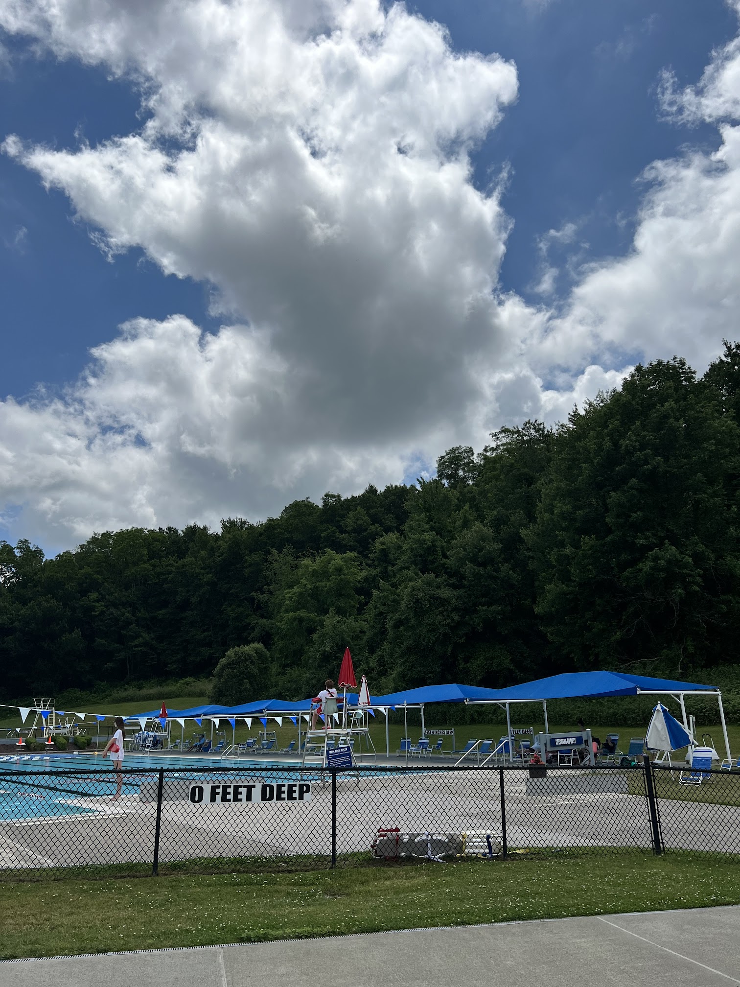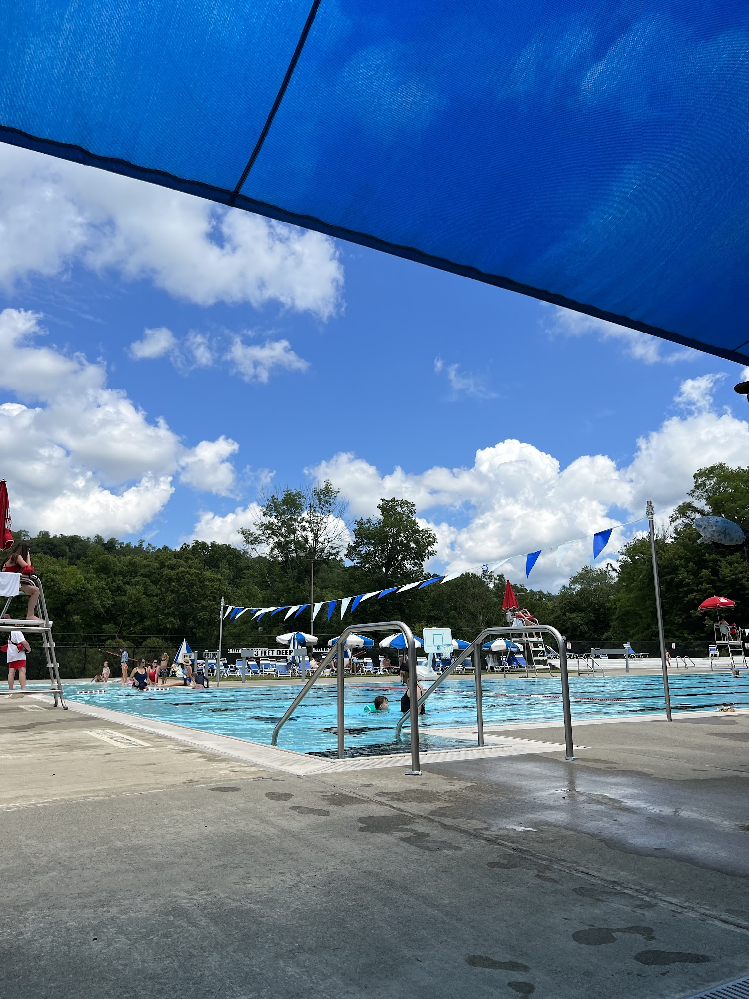 We were there to participate in a swim team race. It is a nice outdoor 50 meter outdoor pool. There is adequate shade via umbrellas and canopy. Lot of pool chairs. Bathrooms and shower facilities were nice. Lucky residents.