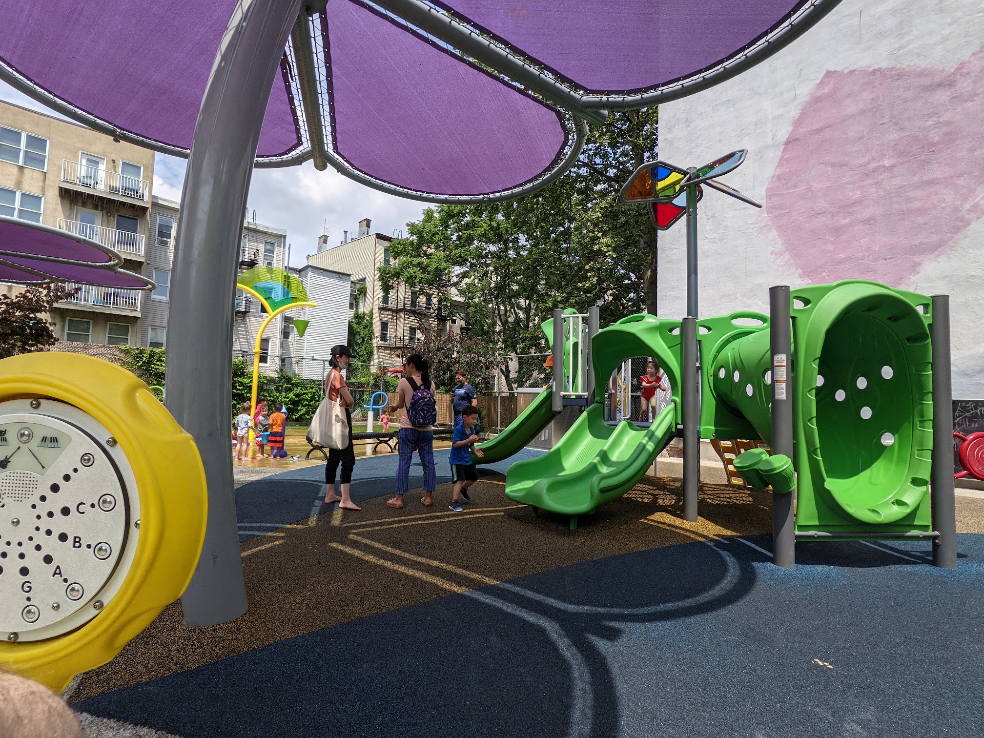 Madison Park Splash Pad is a popular outdoor recreational area located in Hoboken, NJ, designed primarily for children's water play. It features various sprayers, jets, and interactive water elements, providing a refreshing and fun experience during warmer months. As part of a public park, it offers a free and accessible space for families to enjoy.