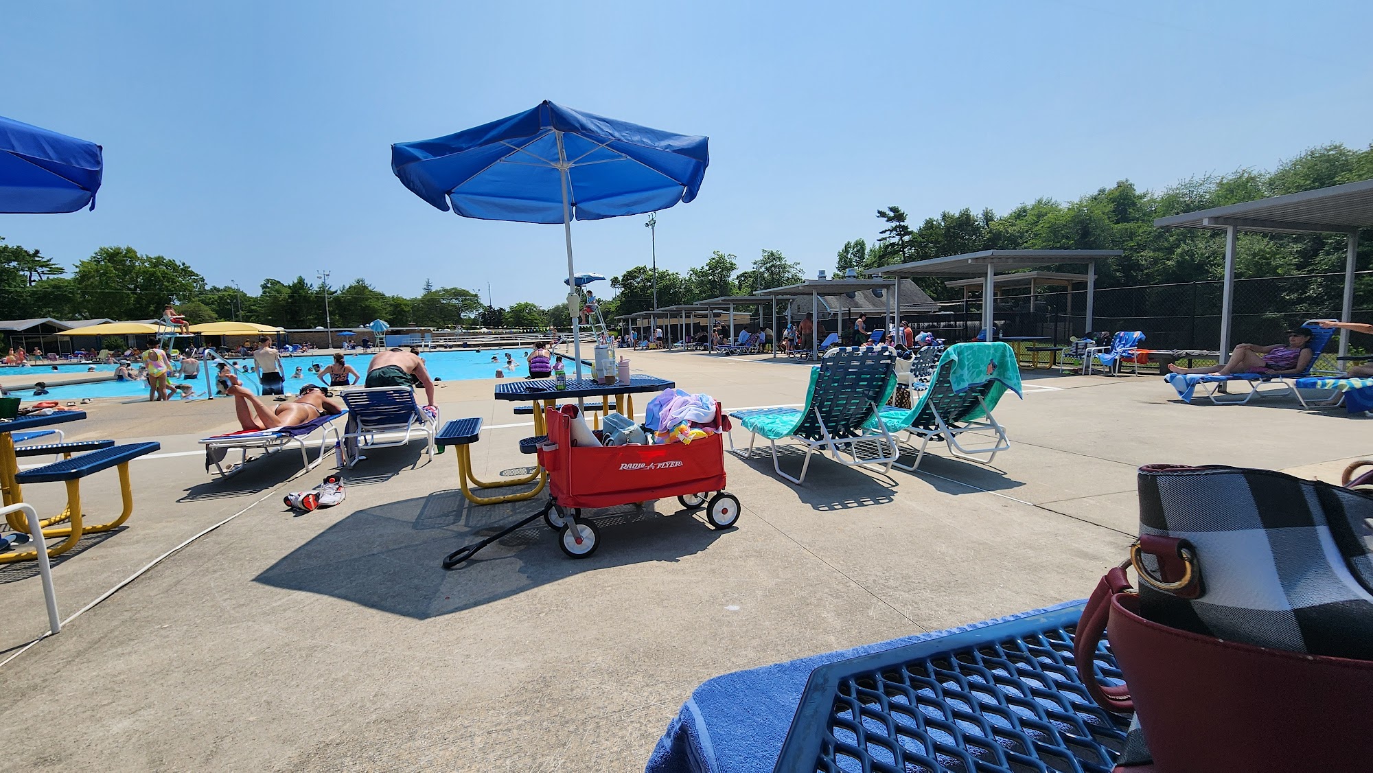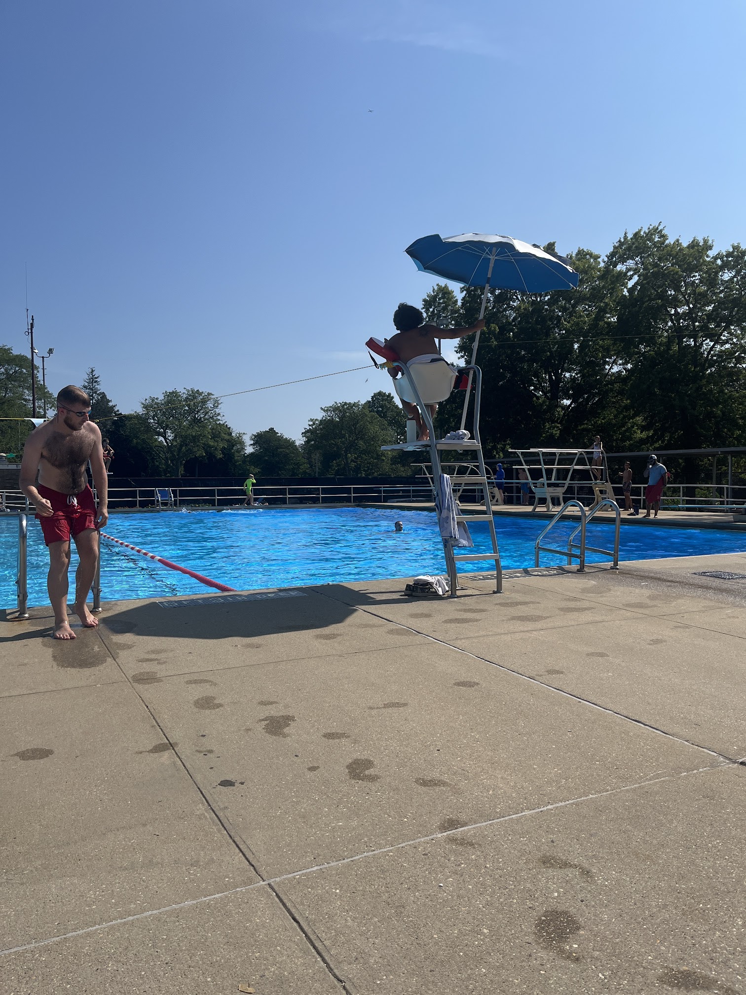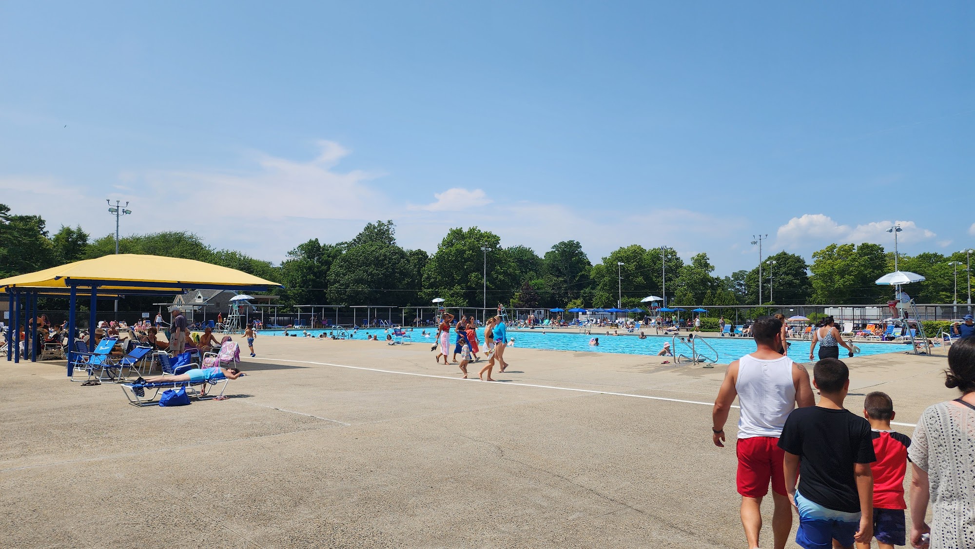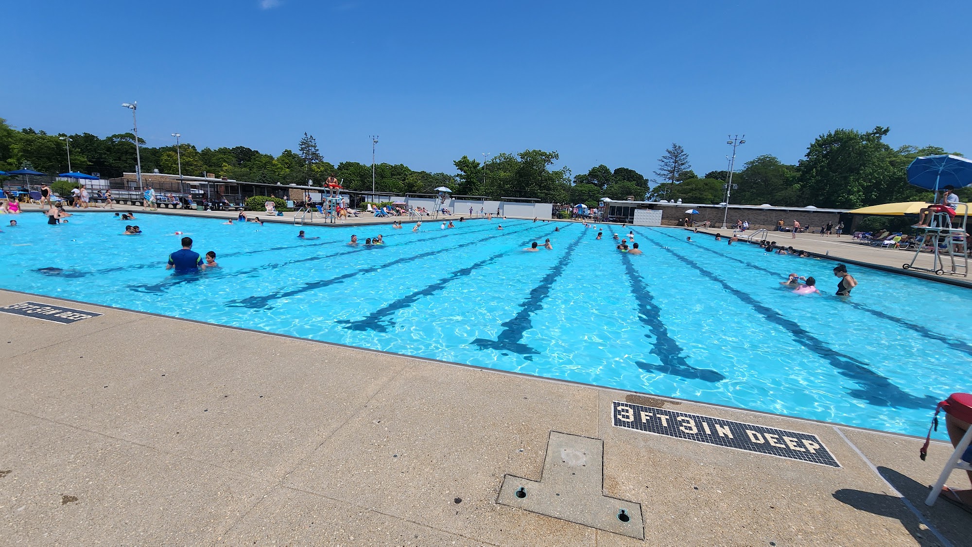 It's never uncomfortably crowded and the lifeguards are ALWAYS friendly and helpful. The pools are clean and there's a section just for adults which I LOVE. There's a baby pool, a swimming pool (3 ft to idk), and then a diving tank which is 5 feet to 11 feet deep. This is an awesome place for families and kids. There are two parks right outside the pool.