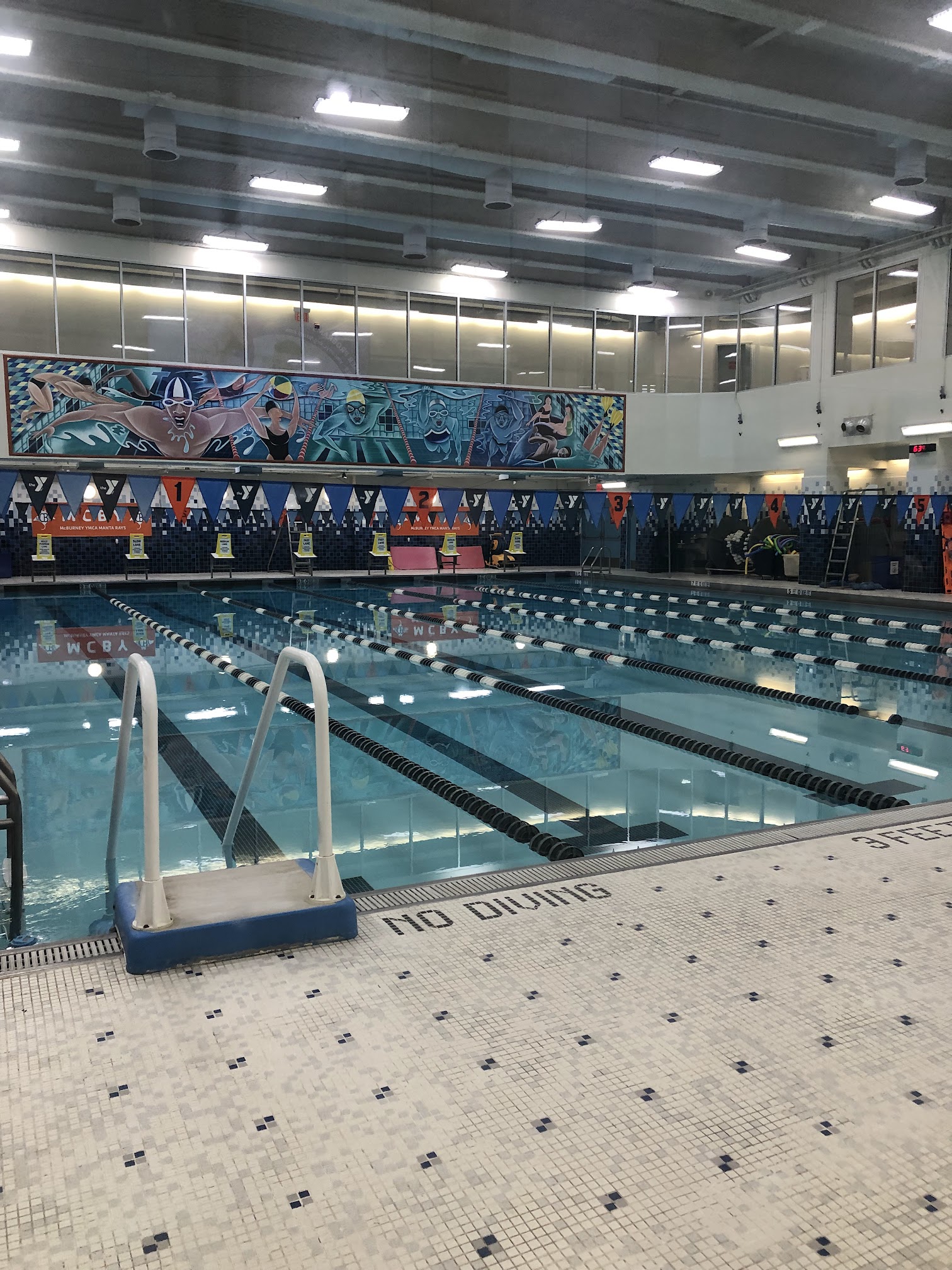 The McBurney YMCA typically features multiple swimming pools. Its main lap pool is generally maintained at a temperature suitable for swimming, often around 79-82°F (26-28°C). They may also have a warmer instructional or program pool, which is usually kept at a higher temperature, approximately 86-90°F (30-32°C), for lessons and rehabilitation.