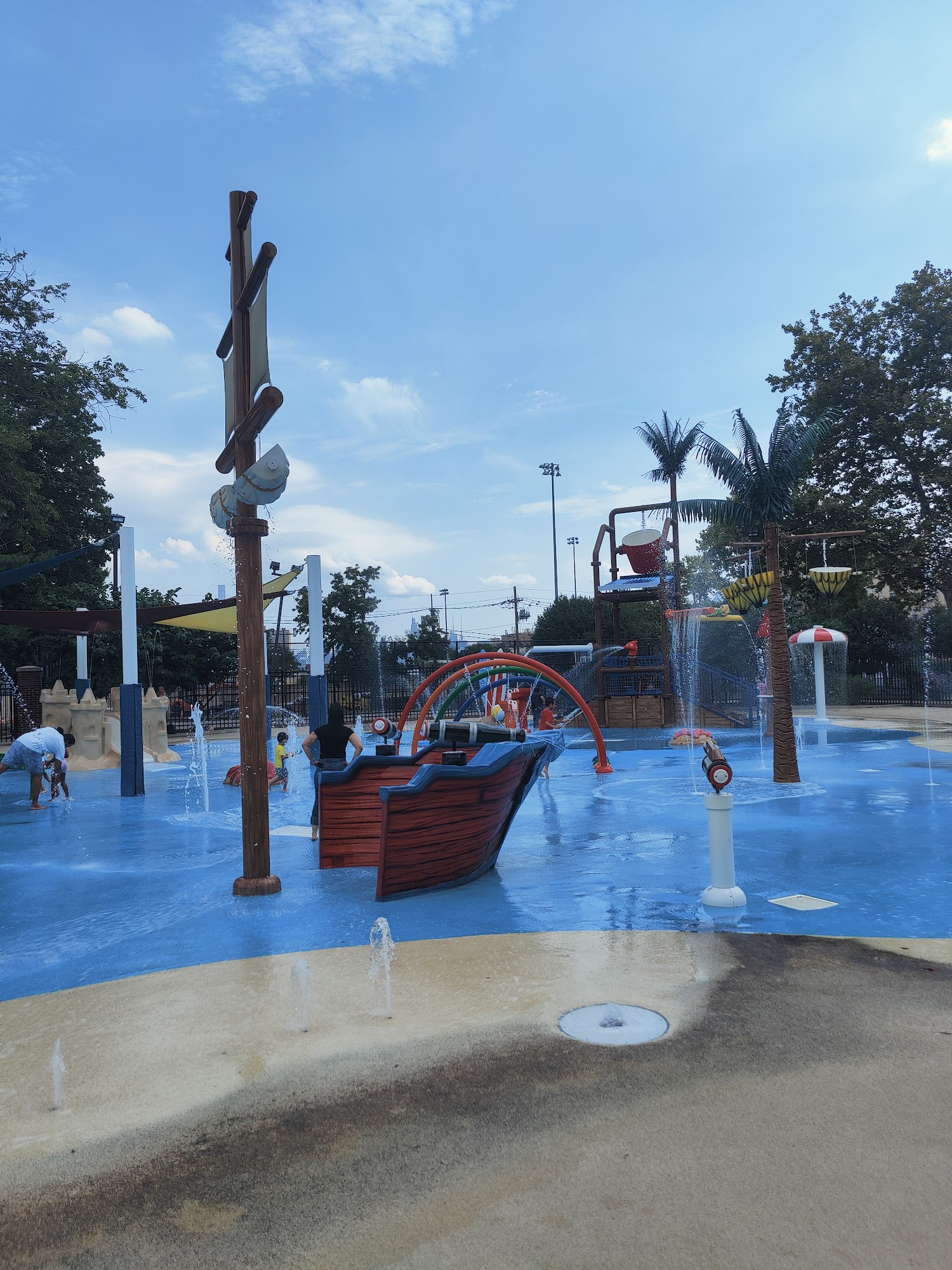 What are people saying (AI review summary)? This water park/splash pad is highly recommended for families with children of all ages (from 1 to 8 years old), offering a great and enjoyable experience for both kids and parents. It is praised for being clean, well-maintained, and pleasant, with the added benefit of an adjacent playground. Key amenities include security and restrooms, and convenience is high as no reservations are needed – just a sign-in. Staff members are friendly and inclusive, and the facility is free, making it a great option for summer fun, though it can get crowded.