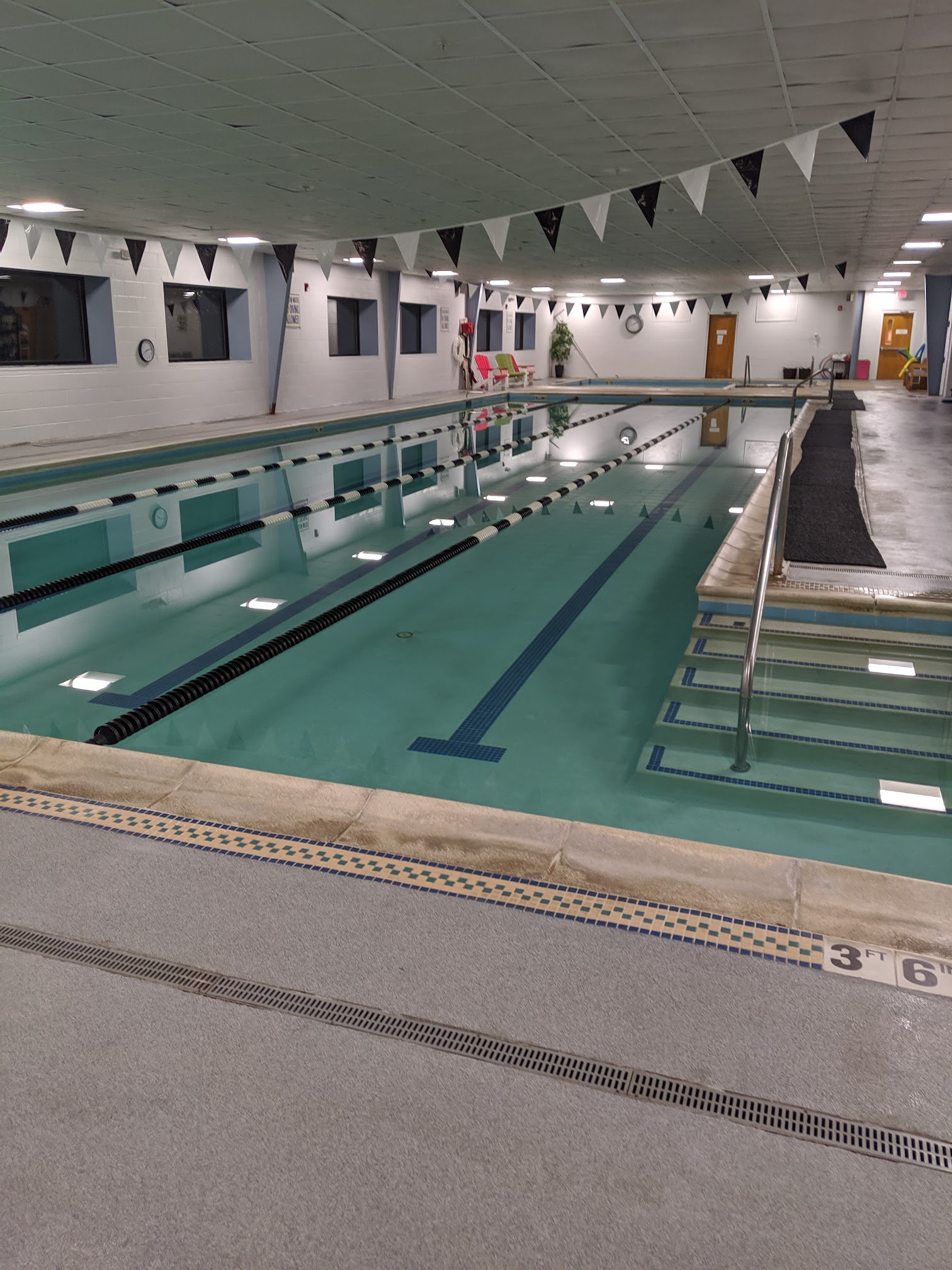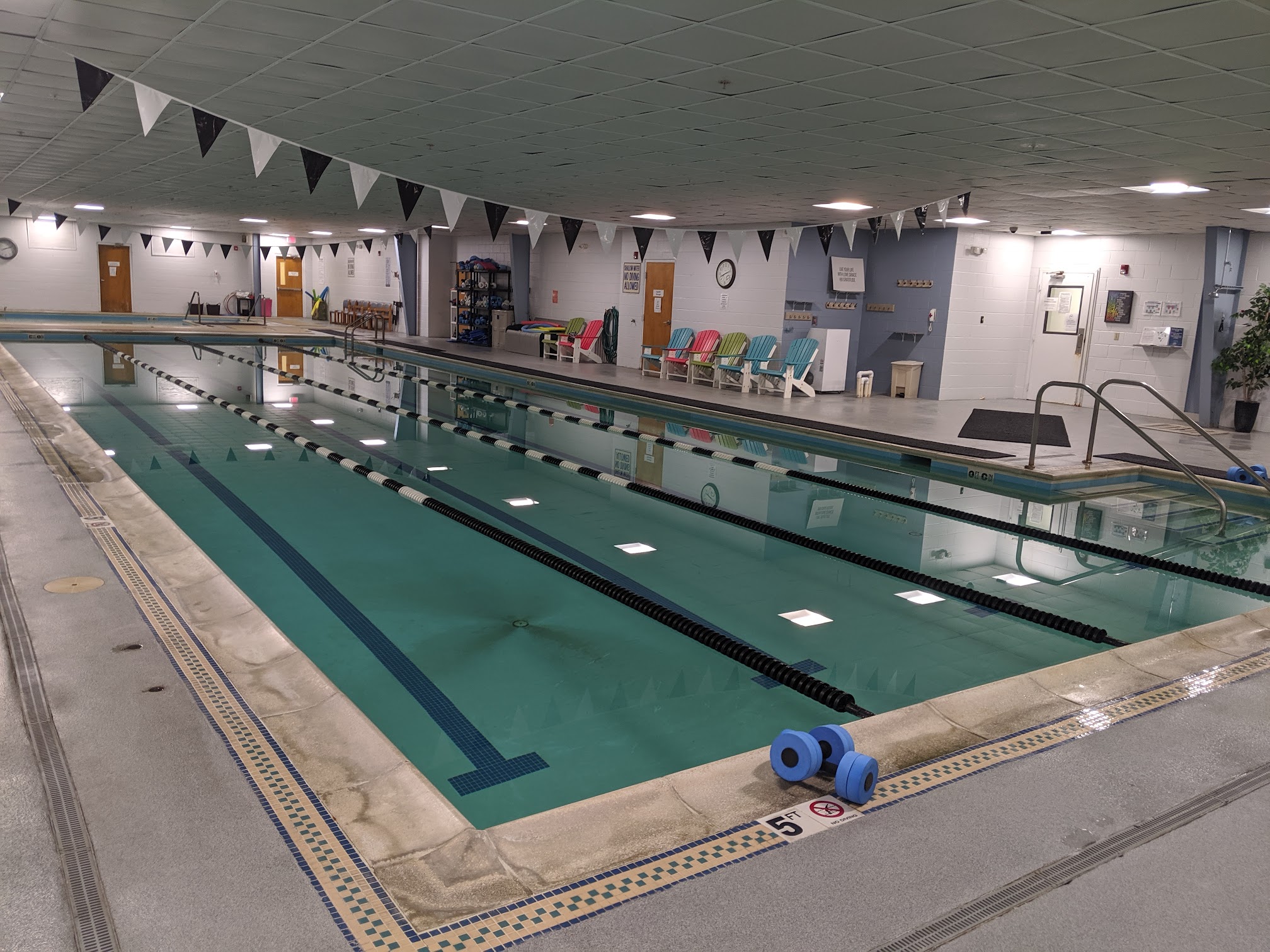 The 25-yard lap pool at the New Milford Fitness and Aquatic Club is typically maintained at a comfortable 80-82 degrees Fahrenheit (26.7-27.8°C). The warm water therapy pool is kept at a soothing 90-92 degrees Fahrenheit (32.2-33.3°C).