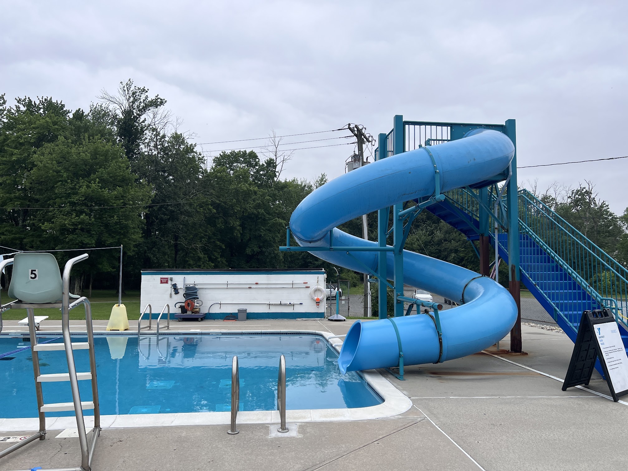 Outdoor swim club featuring 25-meter and 6-lane pools, plus a waterslide and playground.